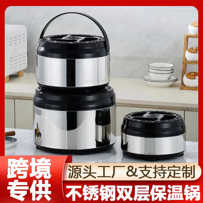 外国貿易向け厚手ステンレス二重層大容量保温鍋3点セット蘭料理鍋家庭用保温鍋保温