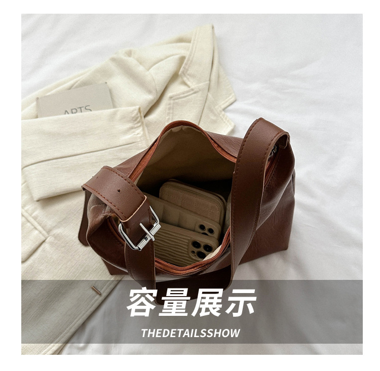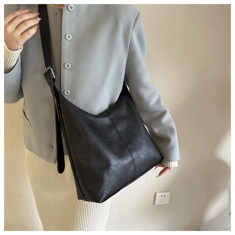 大容量バッグ女性用 2025 春夏新作レトロワイドショルダークロスボディバッグファッショナブルな質感通勤バケットバッグ