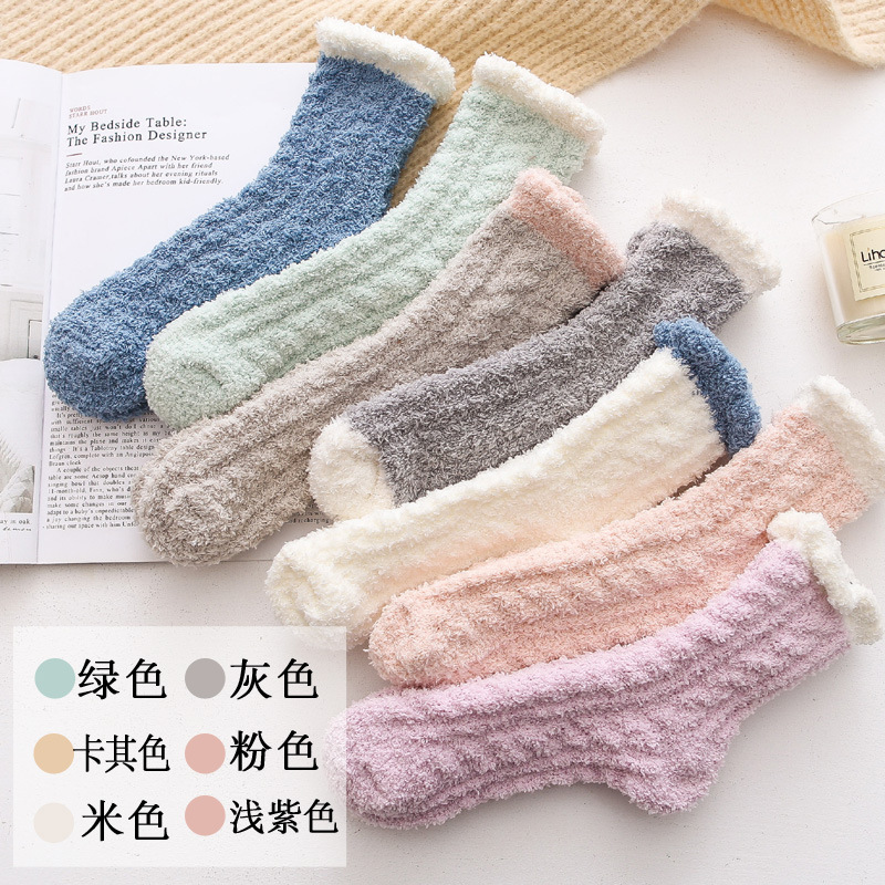 秋冬の純色の麻花の珊瑚の絨毛の睡眠の靴下は厚い保温の中で筒の家庭の靴下の簡単な床板の靴下の子供を温めます。