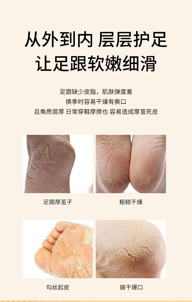 雪弥足根裂クリームのビーズが凝縮して修復クリームのかかとが乾燥しています。クリームの保護と足クリームの卸売りの現物です。