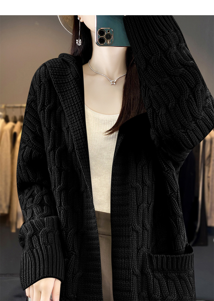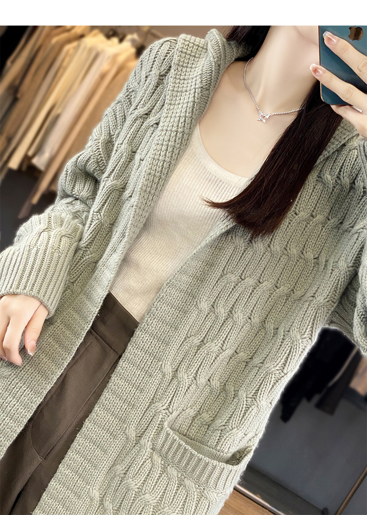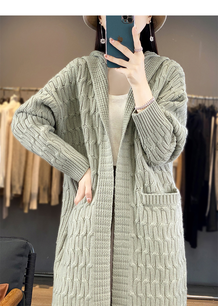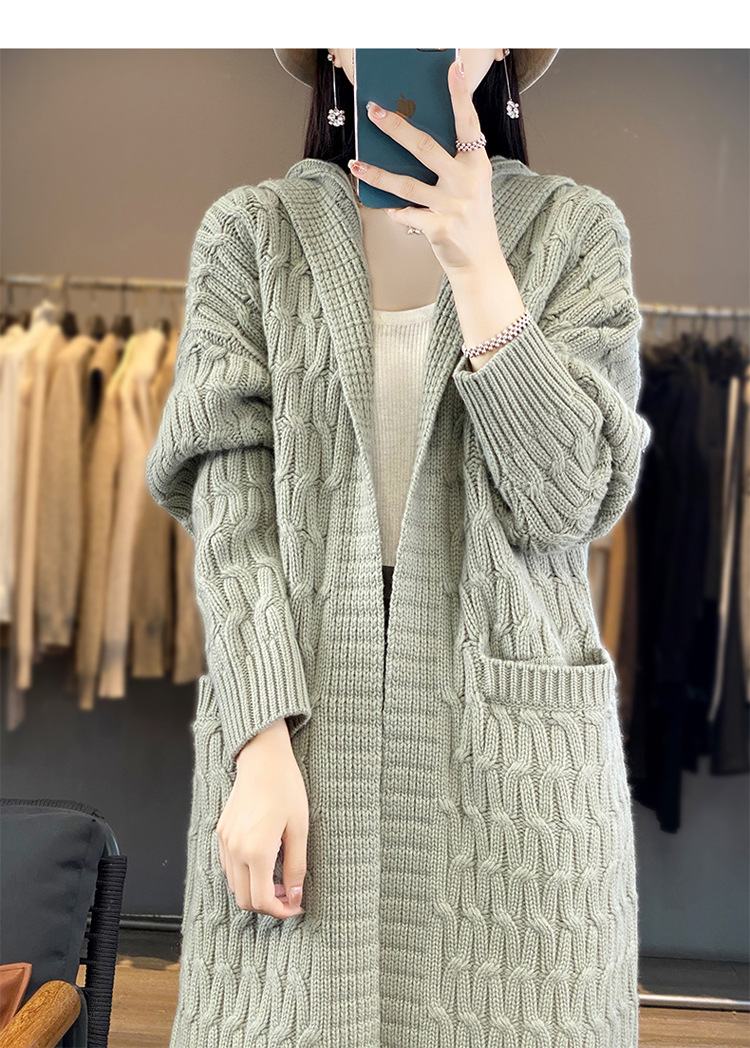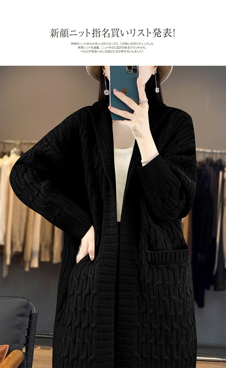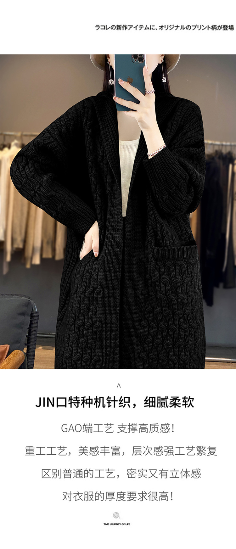 秋冬の新型の怠惰な風のレトロな厚いニットのカーディガンの女性の気質の長いタイプの外はジャカードのウールのカーディガンのコートを着ます。