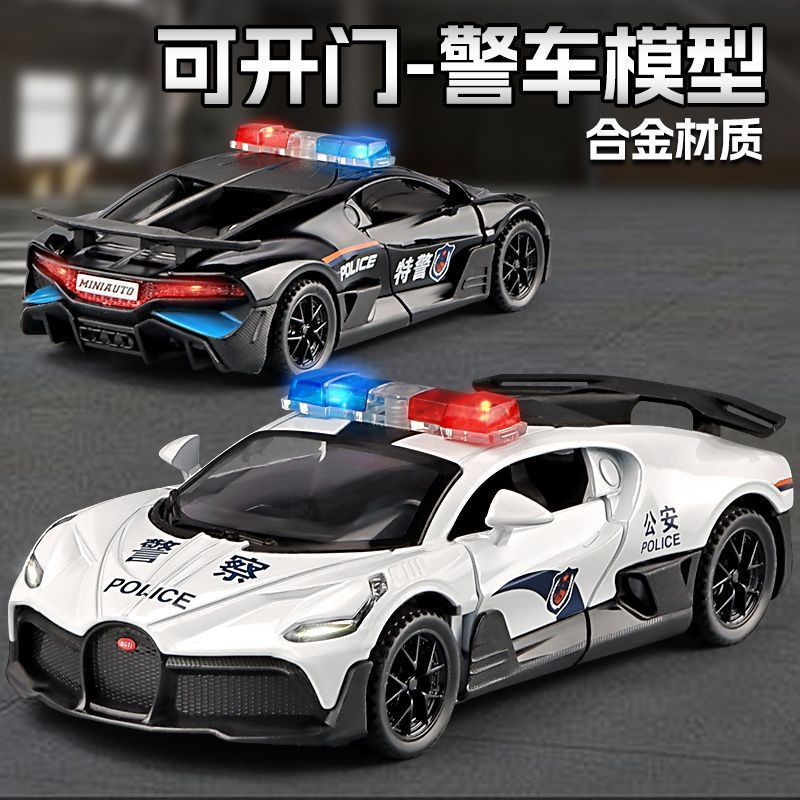 1:32布加迪跑车儿童合金警车玩具公安汽车模型警察男孩玩具车代发