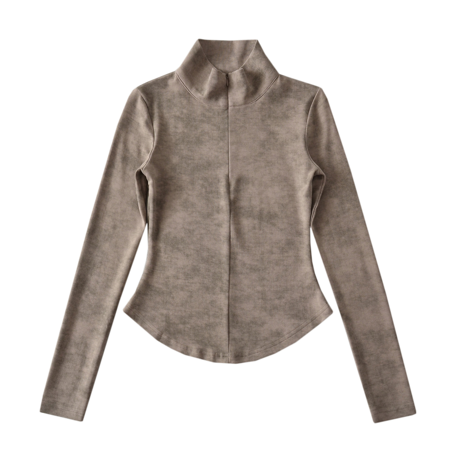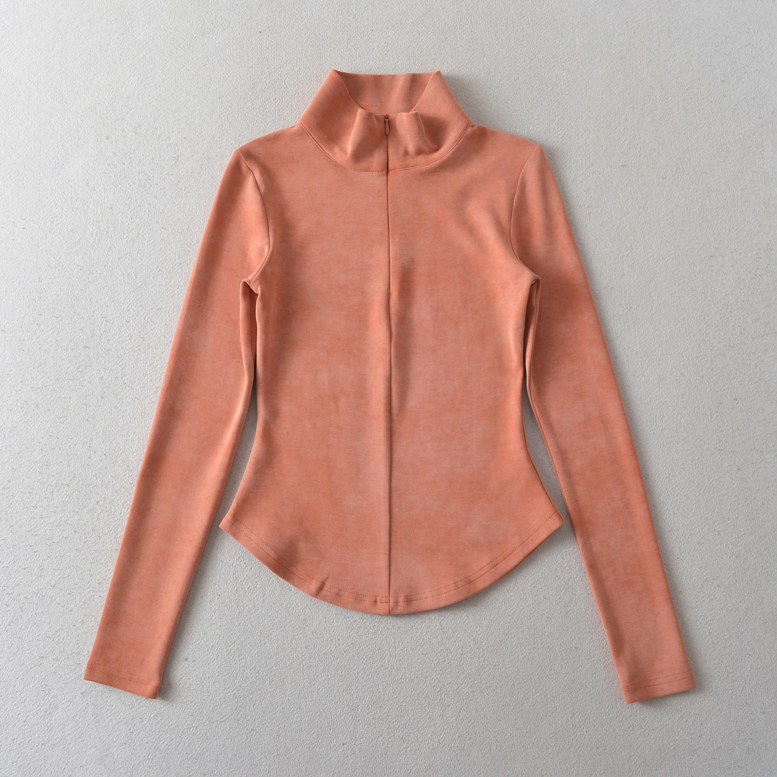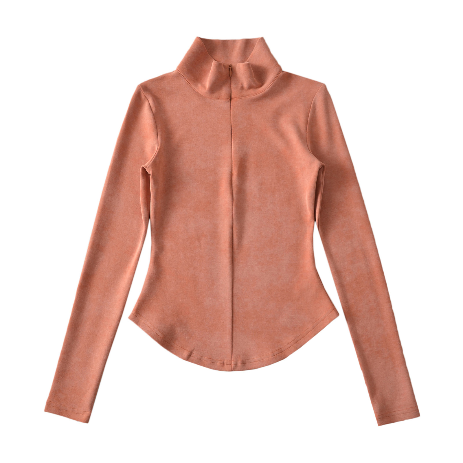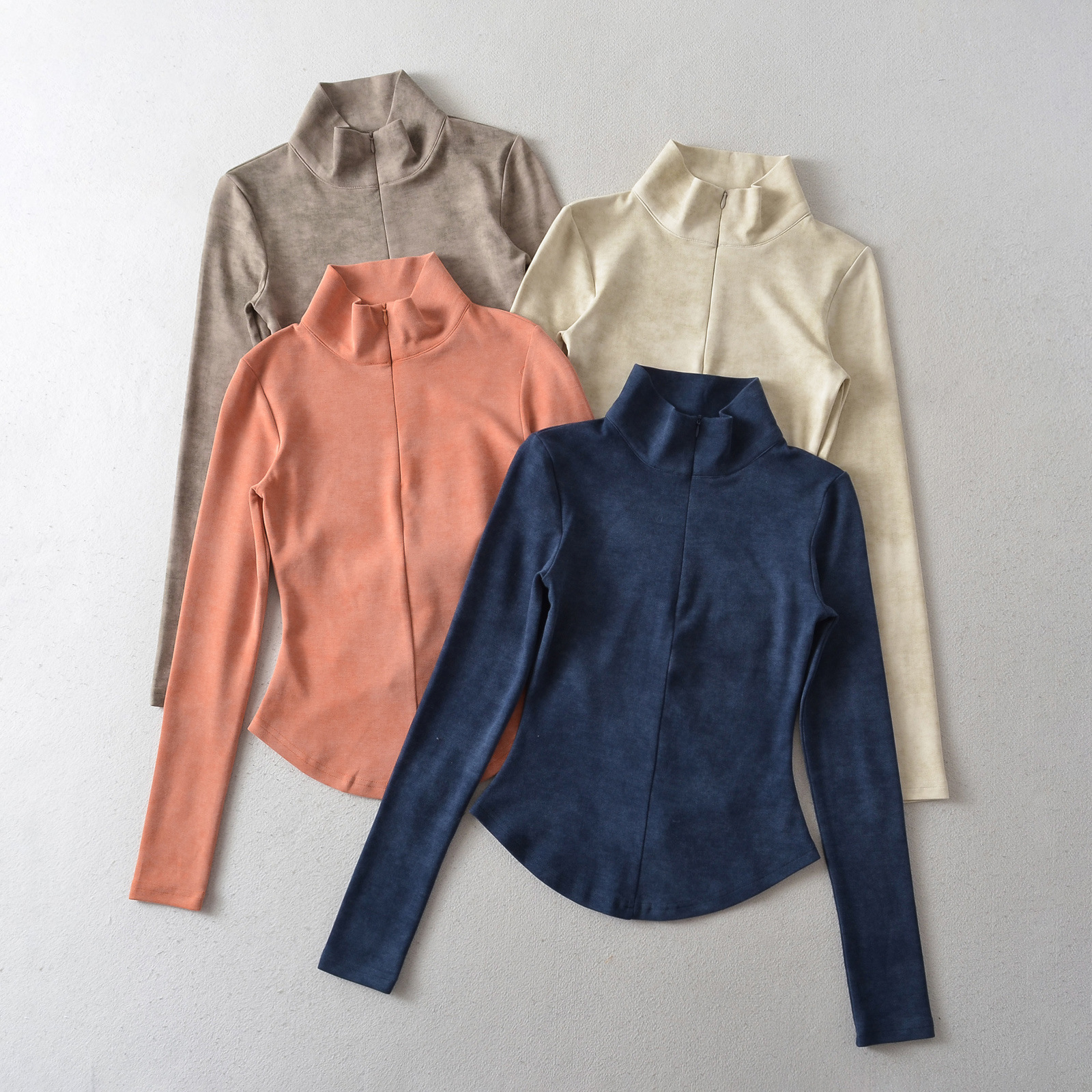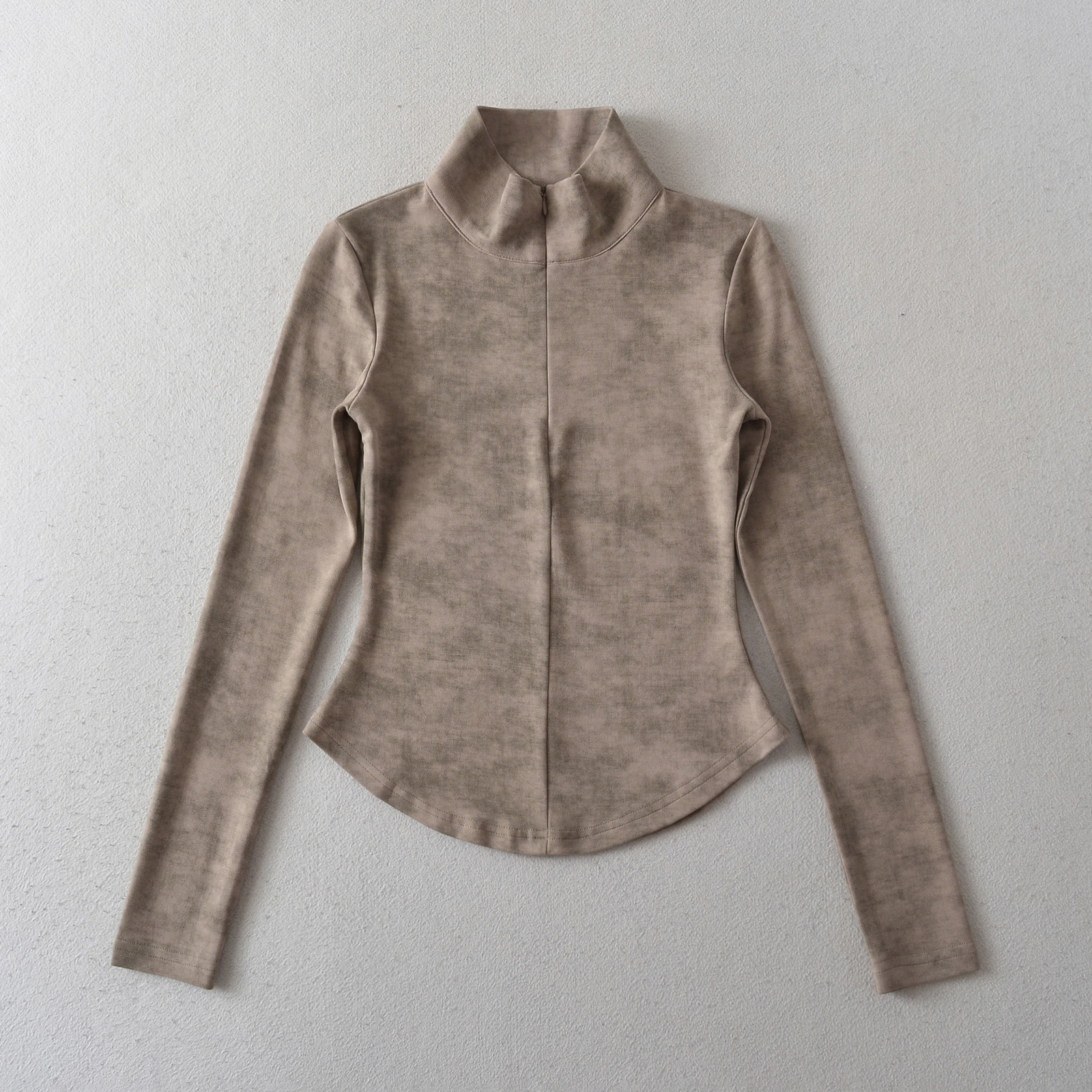 ギャルの高襟の半ファスナーは毛を磨いて長袖のtシャツを染めます。