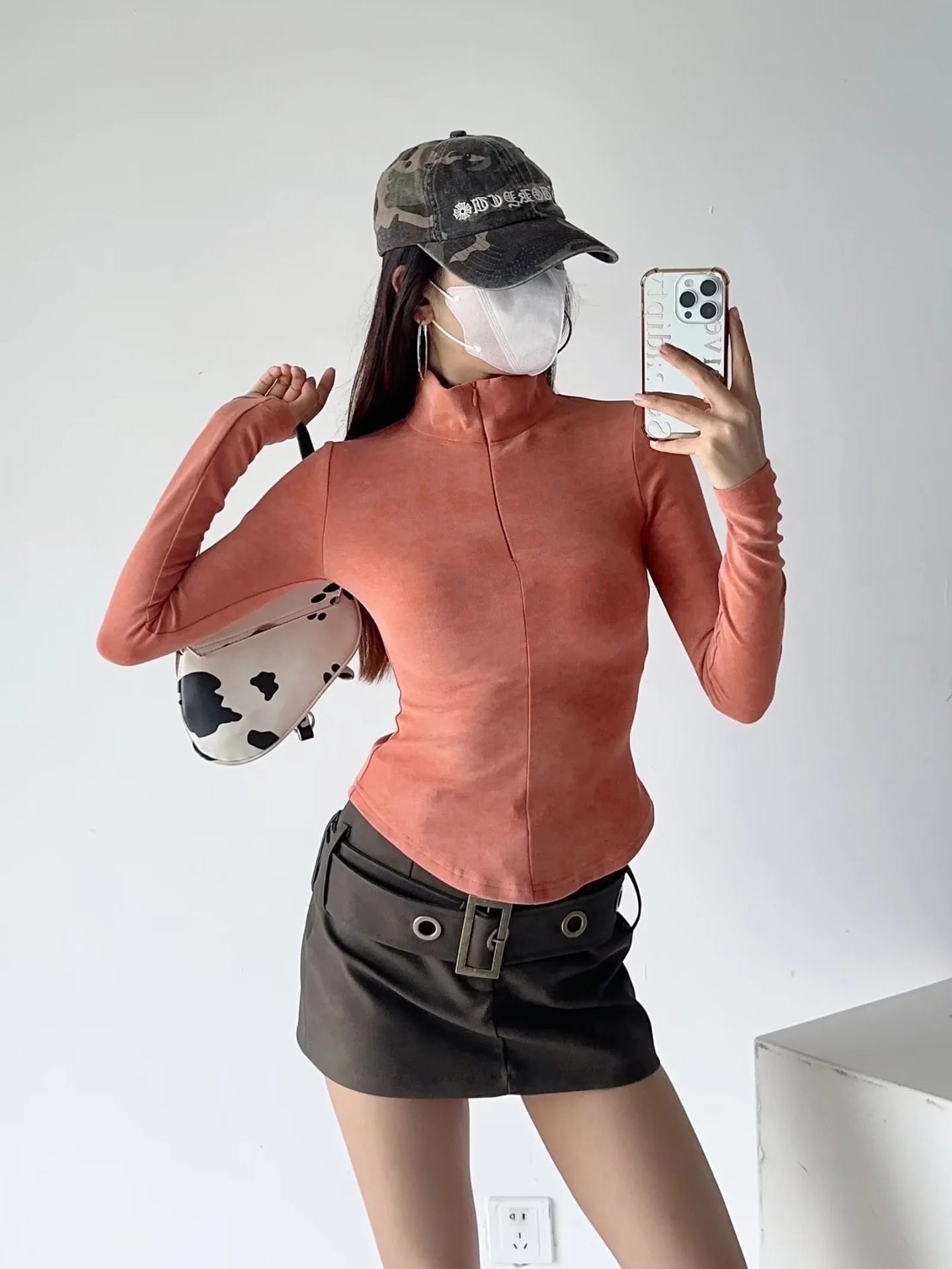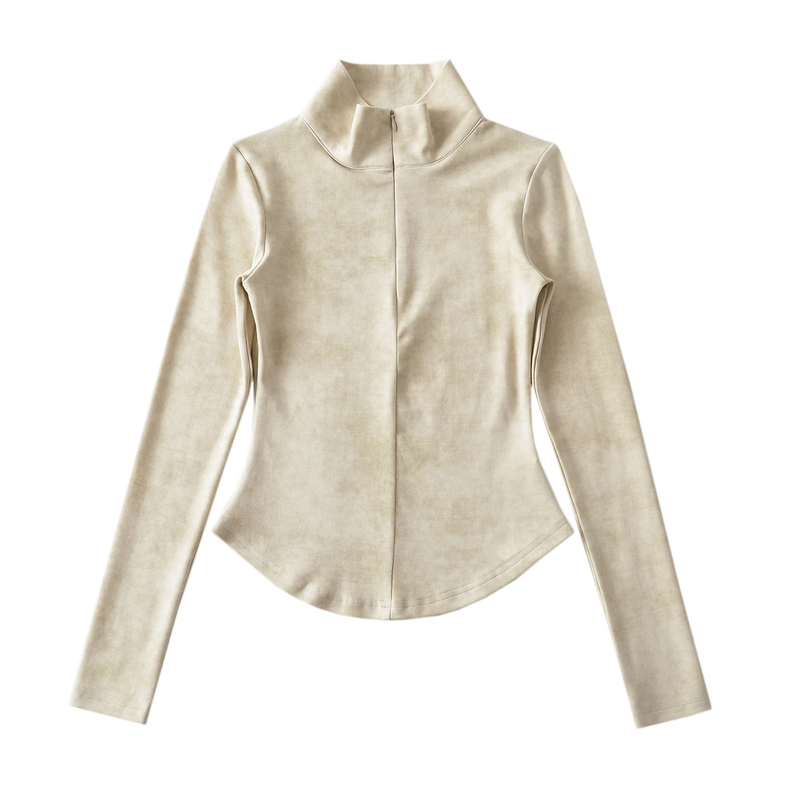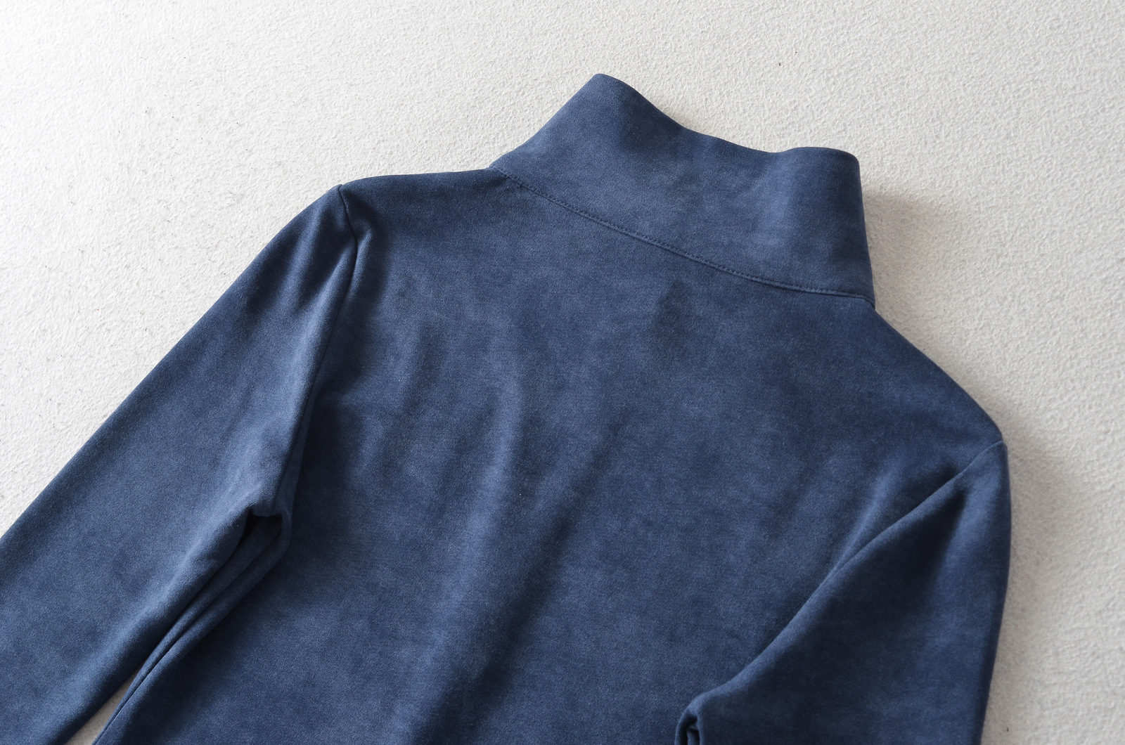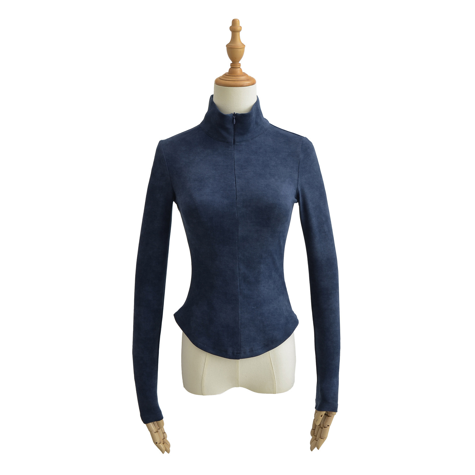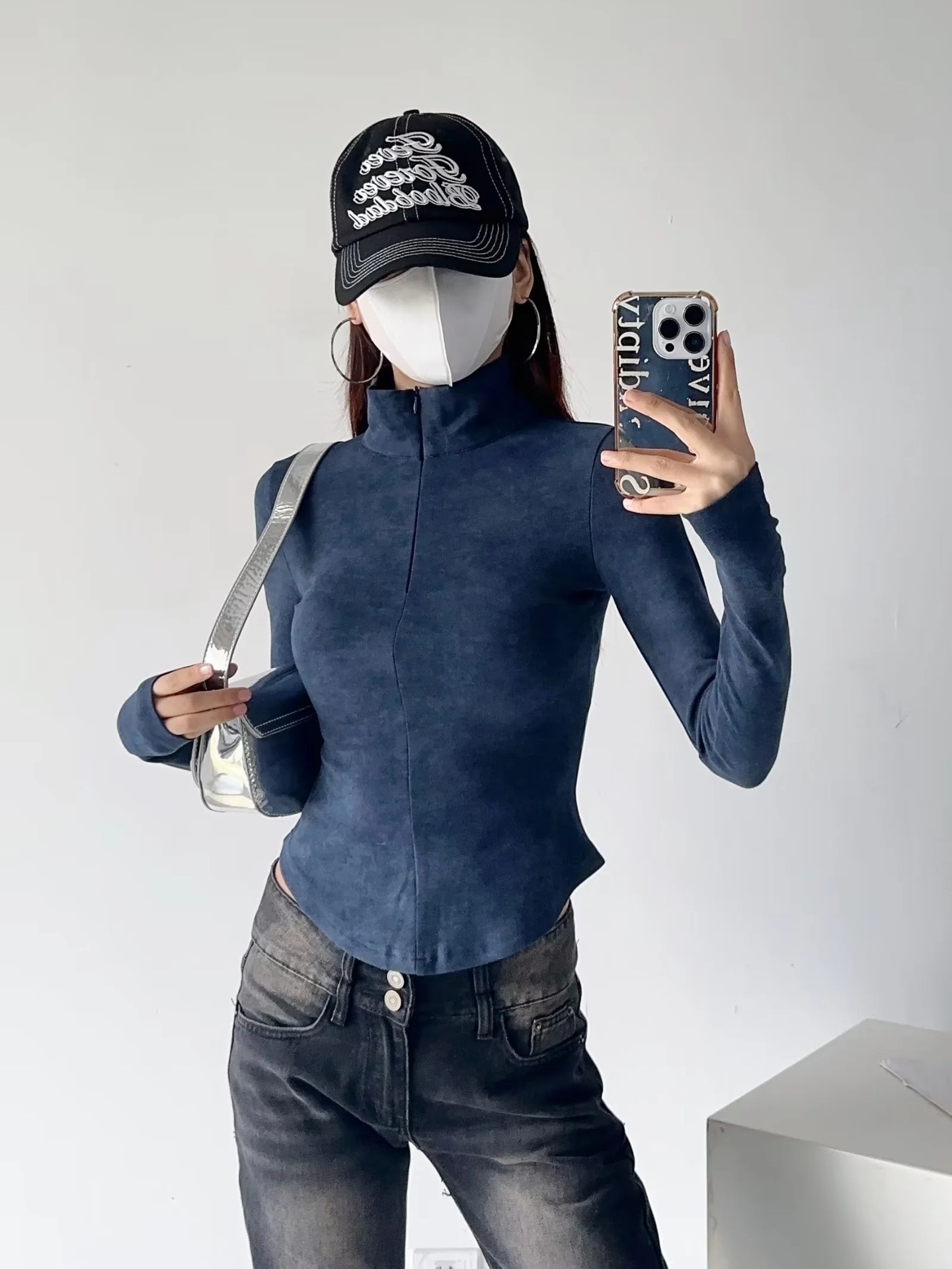ギャルの高襟の半ファスナーは毛を磨いて長袖のtシャツを染めます。