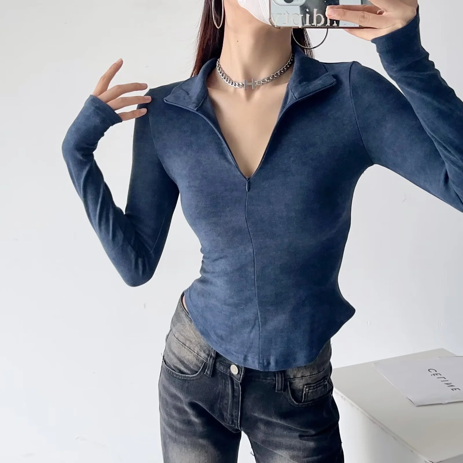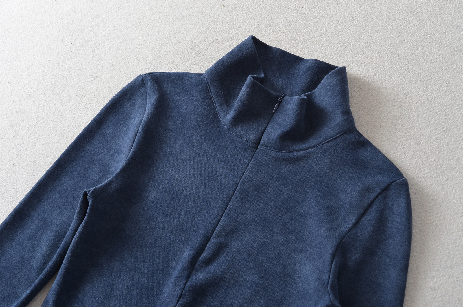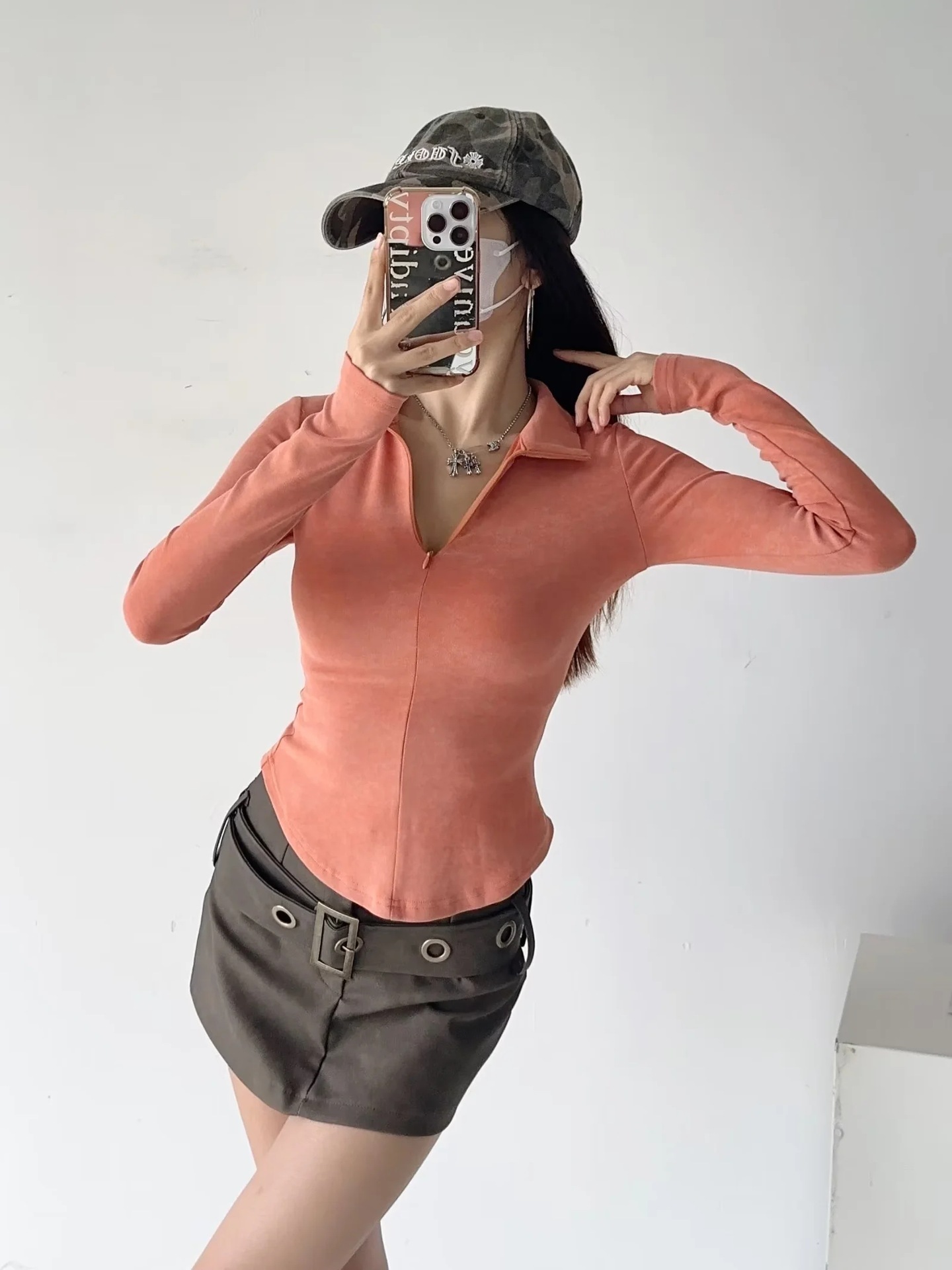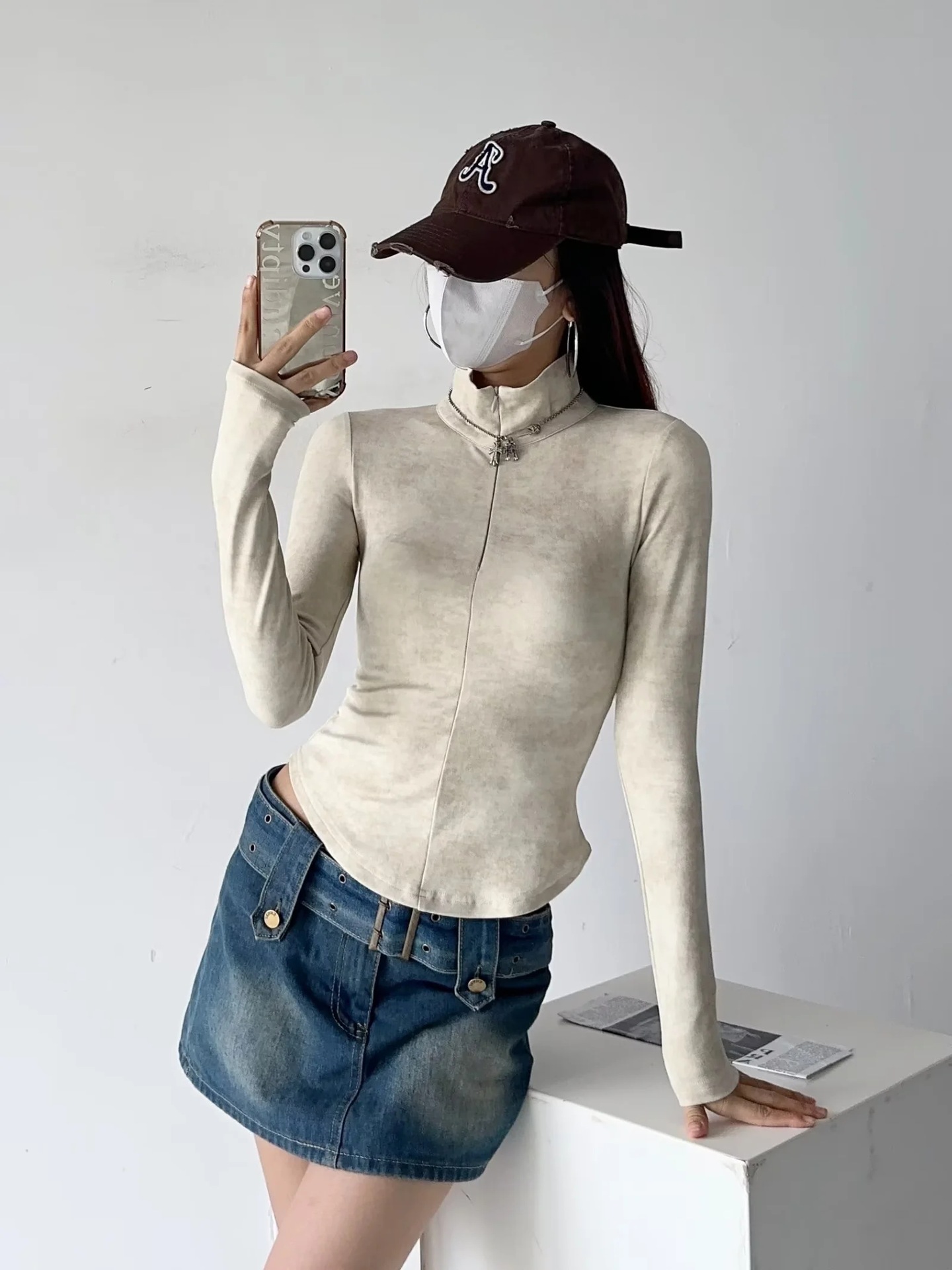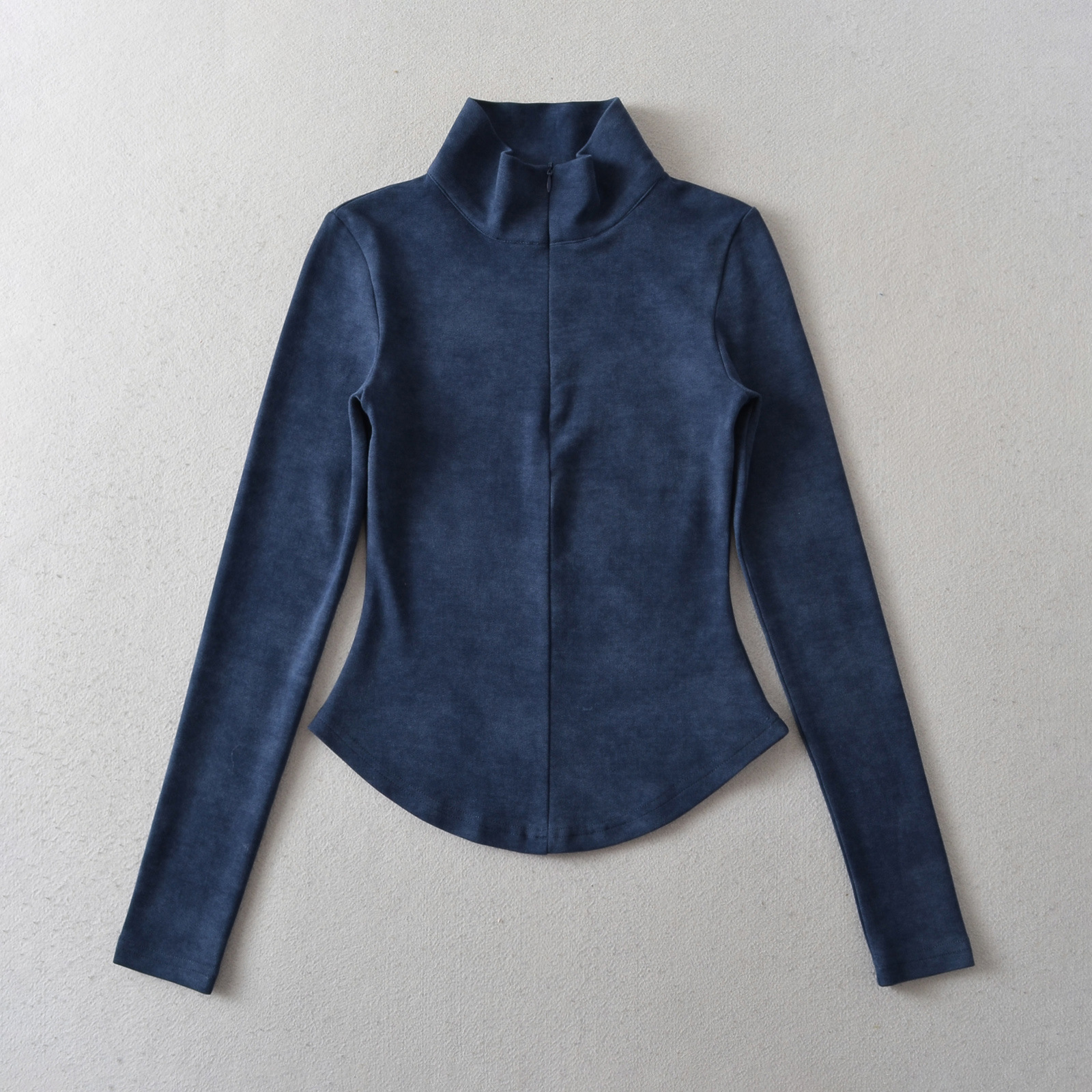 ギャルの高襟の半ファスナーは毛を磨いて長袖のtシャツを染めます。