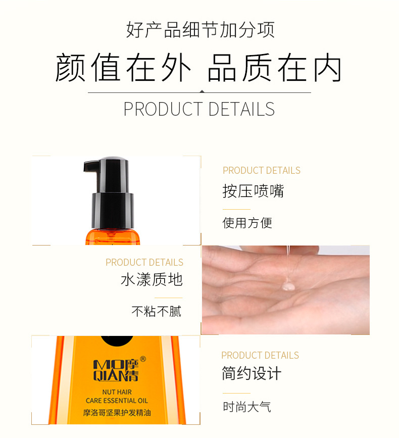 代理の摩倩モロッコ植物ナッツのヘアケア精油は持続的に香りを残して、洗浄しないで乾燥した毛並みを改善します。