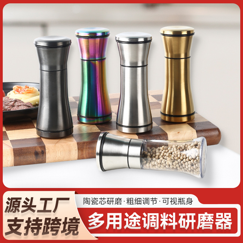 不锈钢胡椒研磨器手动磨粉器海盐咖啡研磨瓶调料瓶手动玻璃磨黑胡椒粉器