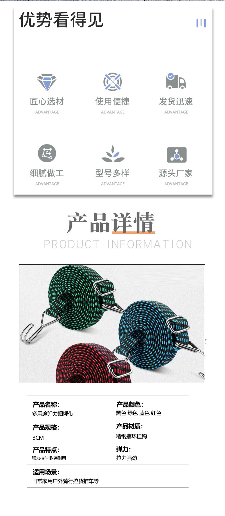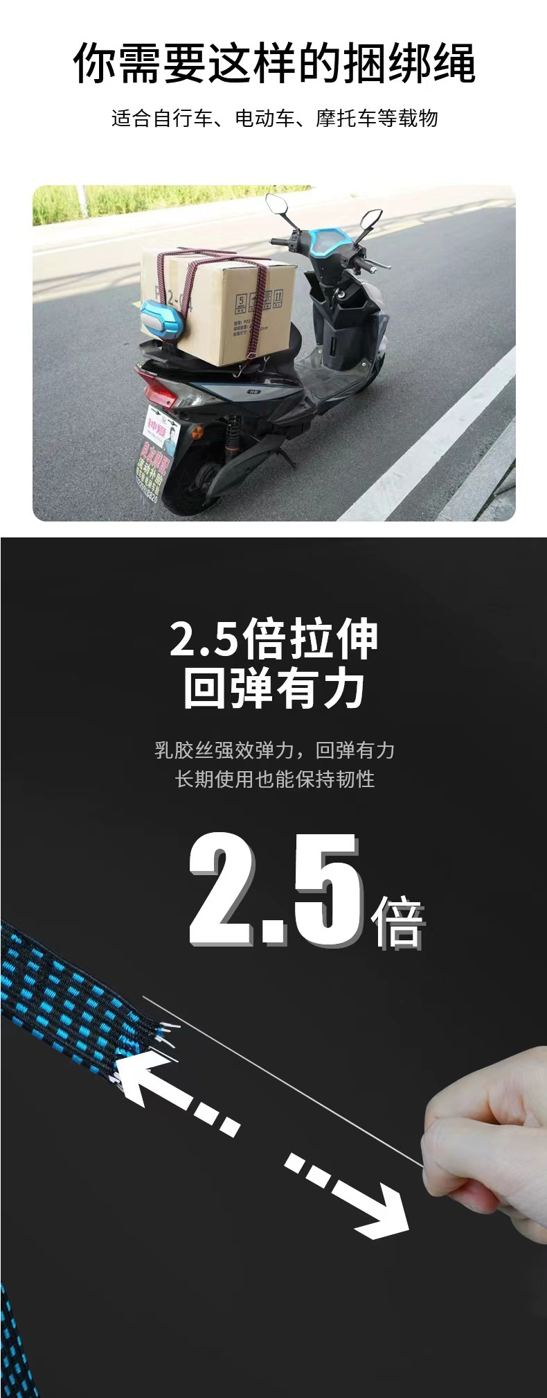 摩托车弹力绑带电瓶车骑行绑绳高弹力绳打包绳户外骑行自行车绑带