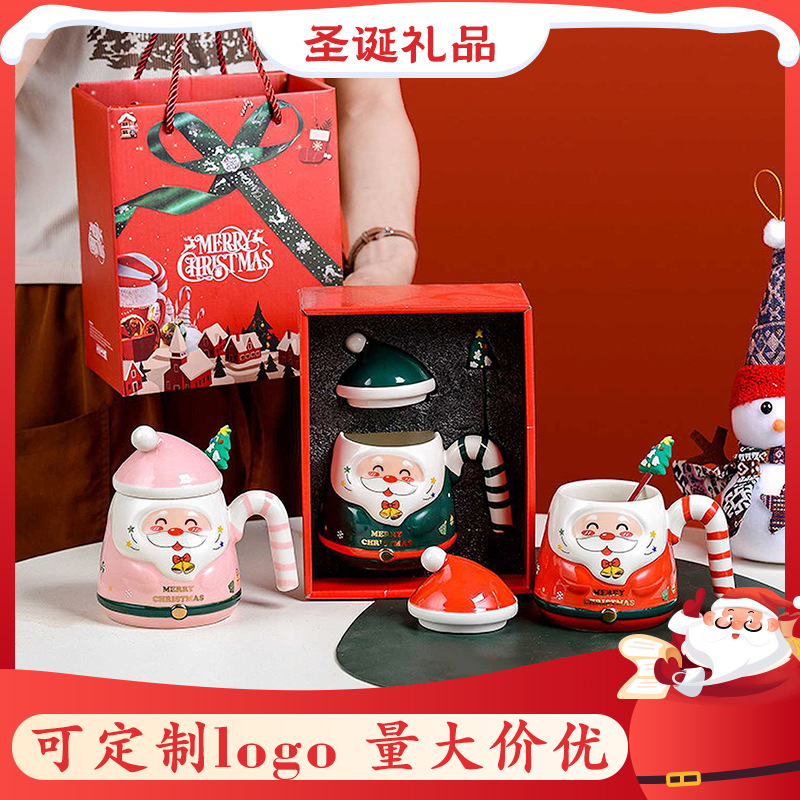 圣诞手提礼盒陶瓷杯带盖可爱水杯大容量马克杯礼物伴手礼杯子批发