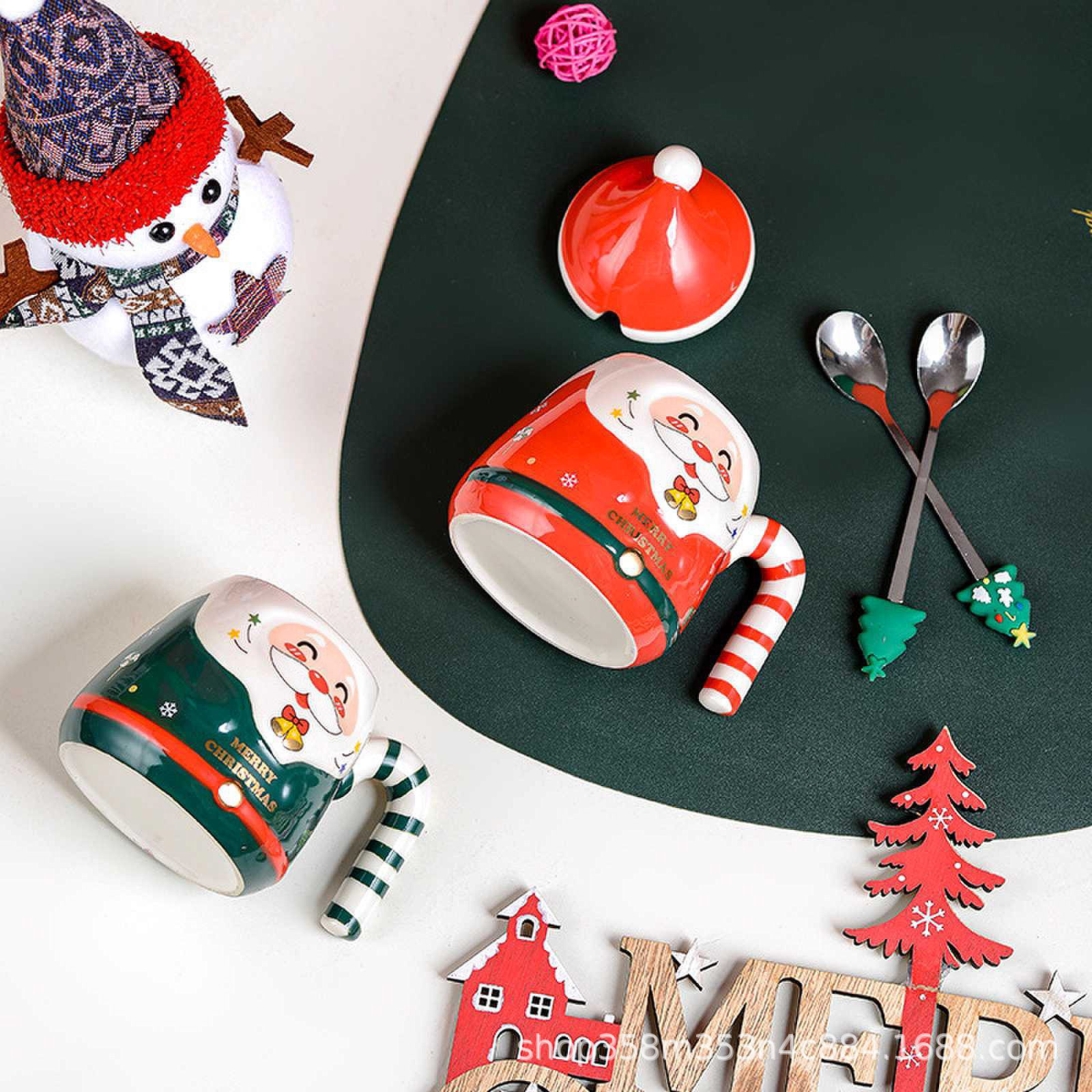 クリエイティブサンタクロース陶磁器カップ蓋付きスプーンクロスボーダー漫画マグカップクリスマス祭りプレゼント手彩コップ