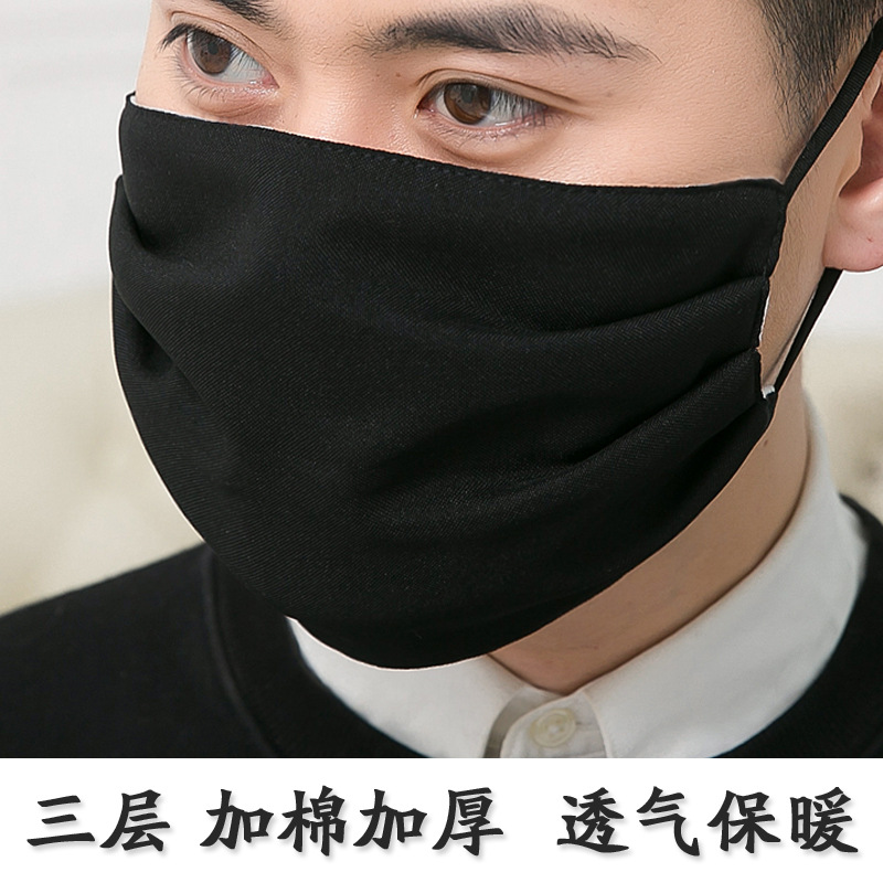 布マスク秋冬純綿男性新型厚手保温ファッションマスク女性韓国版水洗い黒独立顔