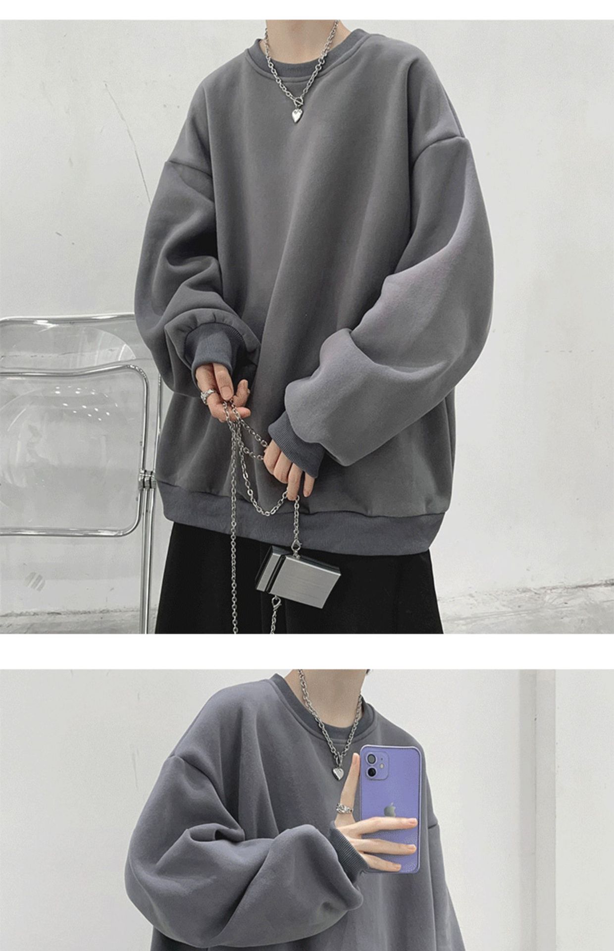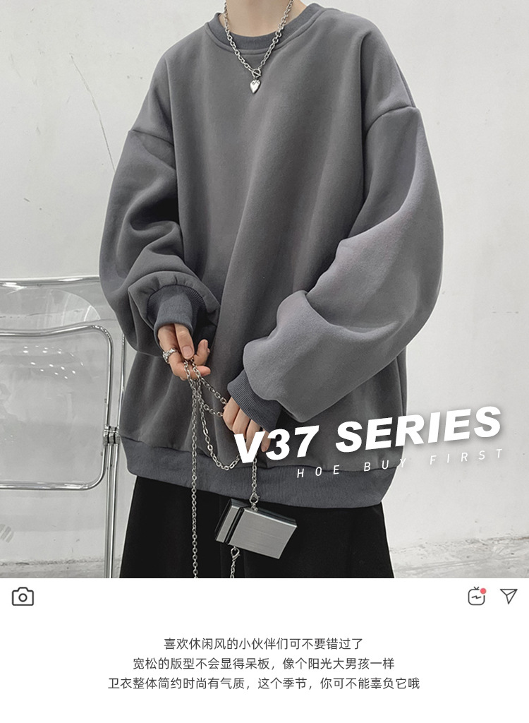 長袖の衛衣の男性の2023の新型の丸首の高い街のvibeのゆったりしている大きいサイズの上で服の紳士服のベルベットのtシャツの潮をプラスします。