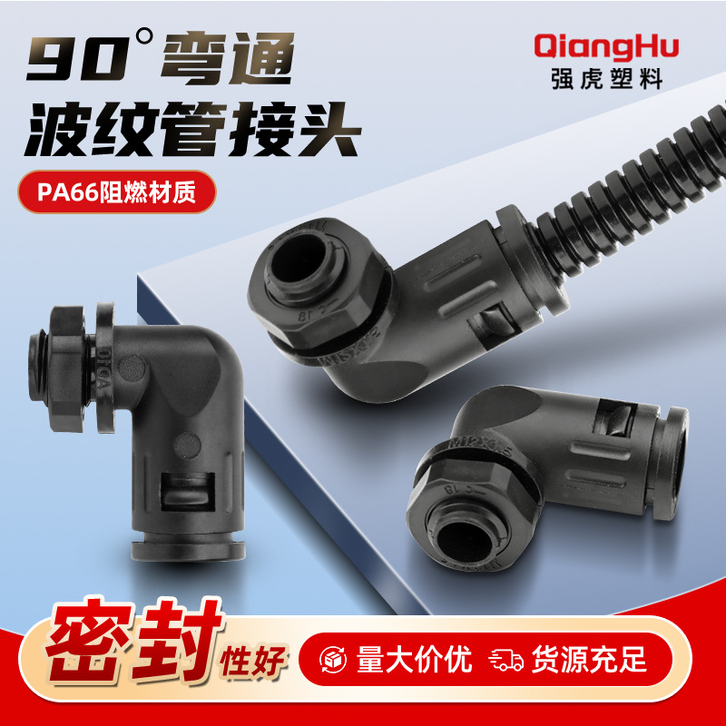 90 ° 曲げベローズ継手PA66難燃材質絶縁クイック継手直角糸通し管曲げ継手