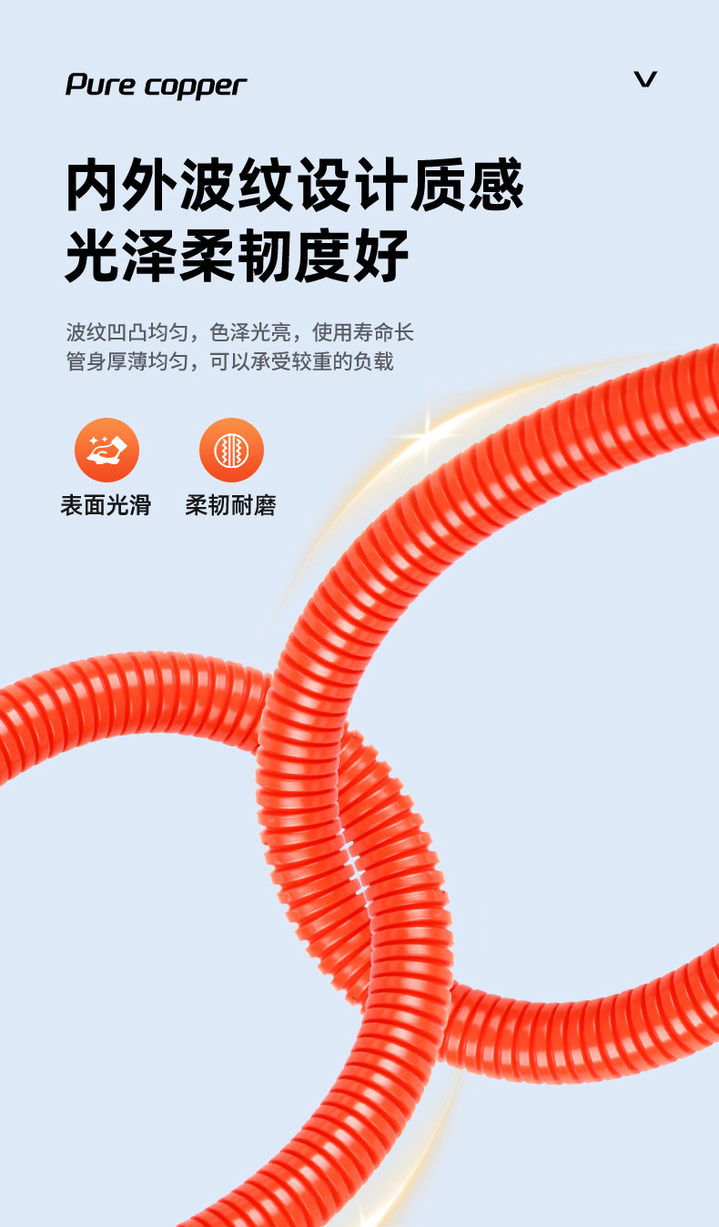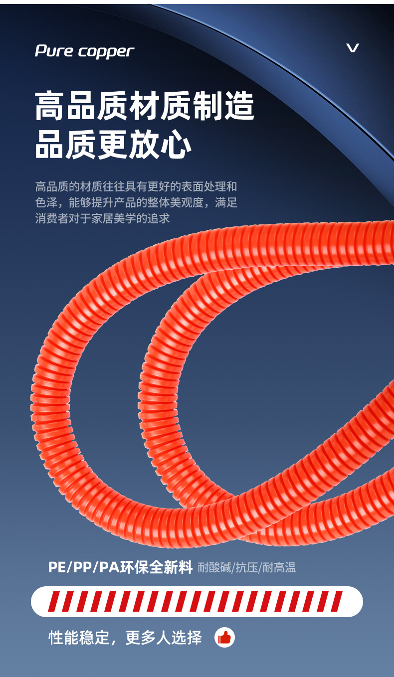 オレンジ色のプラスチック波形管、カスタム波形管、紫外線防止、難燃性ホース、ナイロン波形管、配線管