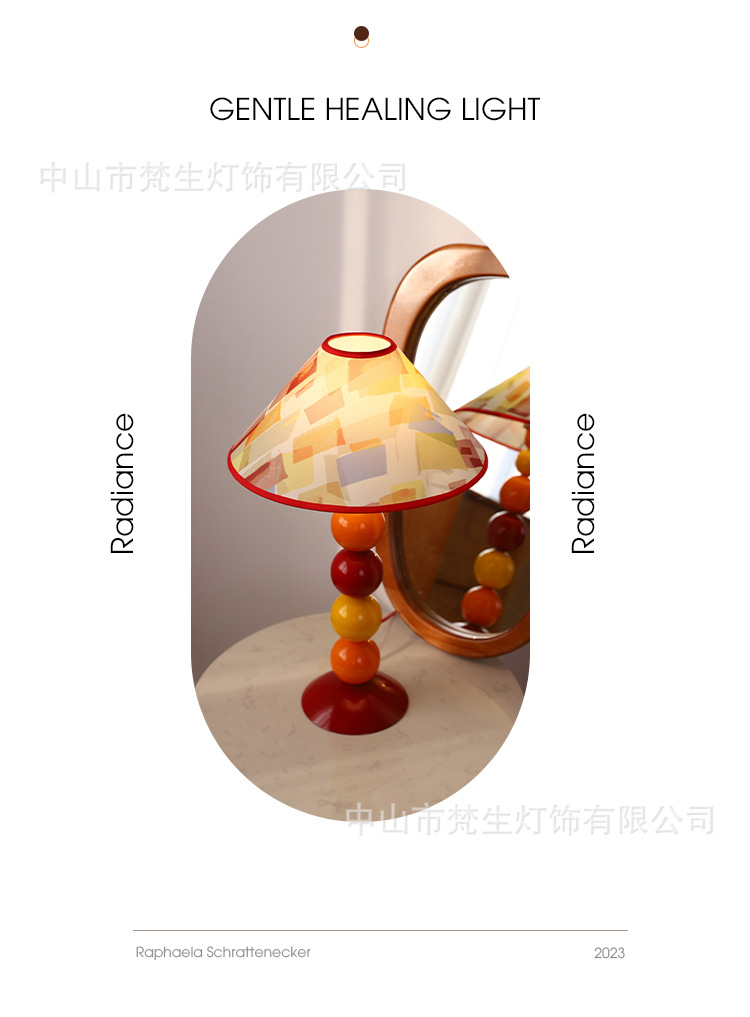 ファンシェン中古クリーム風配色テーブルランプ、キュートでガーリーな北欧デザイナー風寝室ベッドサイド装飾雰囲気ランプ