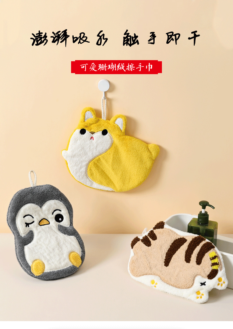 サンゴフリースハンドタオル、吊り下げ式、漫画柄、キッチン、浴室用、吸水速乾、卸売、速乾吸水