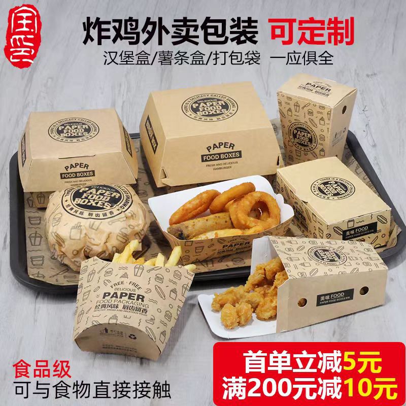 美式汉堡盒包装盒牛卡纸盒炸鸡薯条鸡块牛皮纸盒外卖打包牛皮纸袋