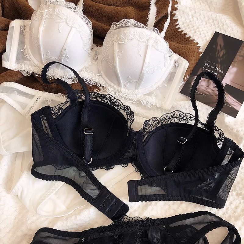 新しいフランスの刺繍レースの下着の薄い柔らかい鋼の輪の上で大きい胸に集まって小さい胸が集まって文のブラジャーのスーツを現します。