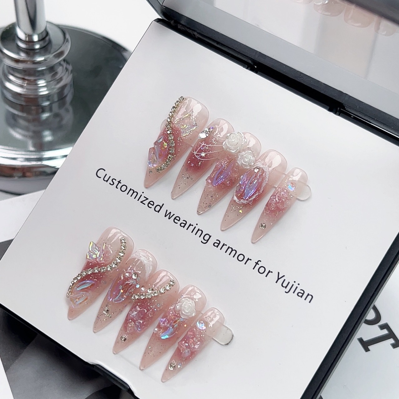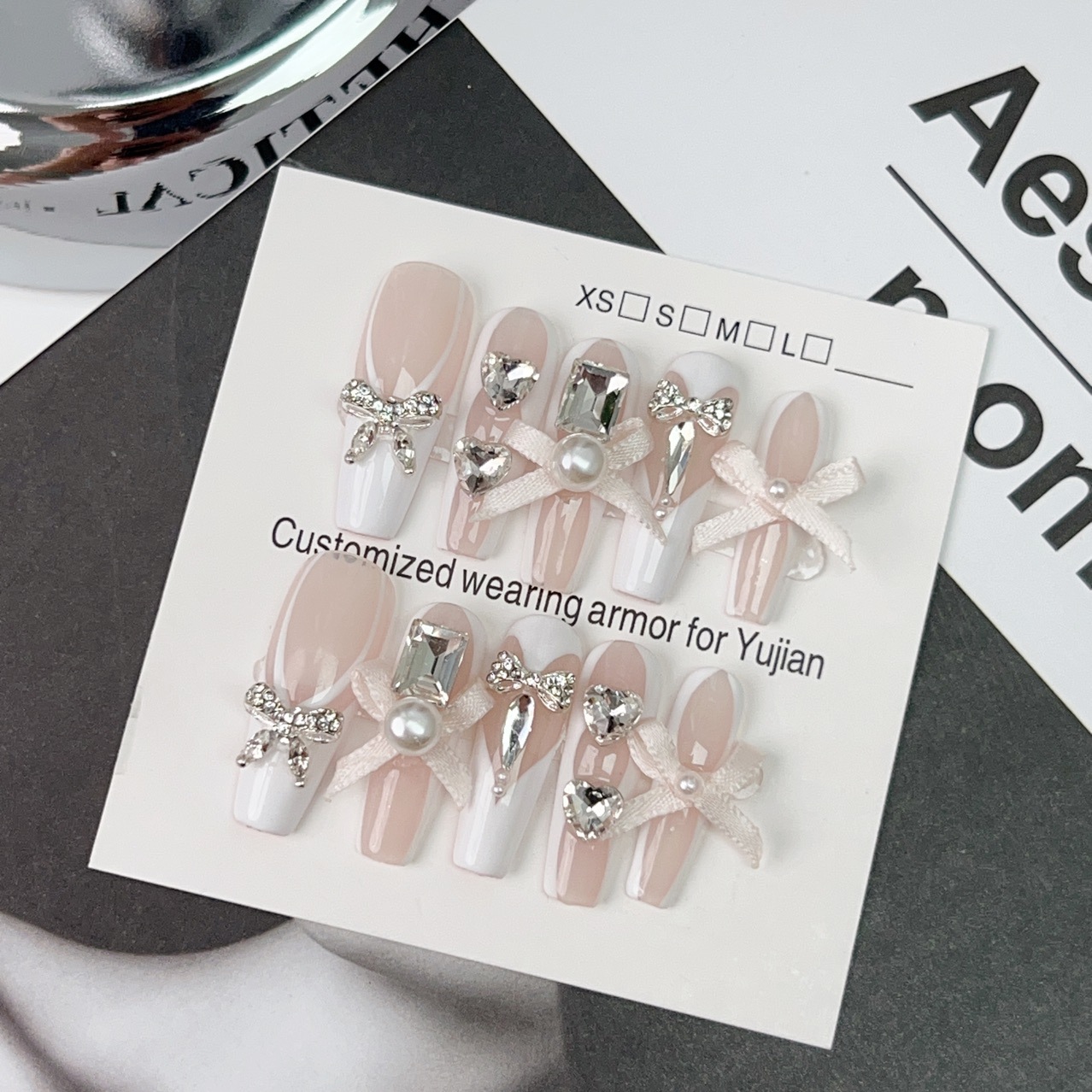 純粋な手の服装の甲の軽豪華な純粋な欲の風の蝶結びの顕白の重工のネイルの完成品のスーツは取り外し可能です。