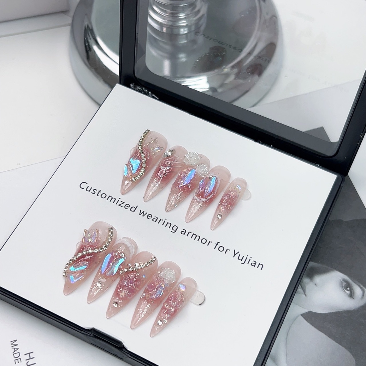 纯手工穿戴甲满钻重工高级感轻奢ins 风美甲贴片成品假指甲