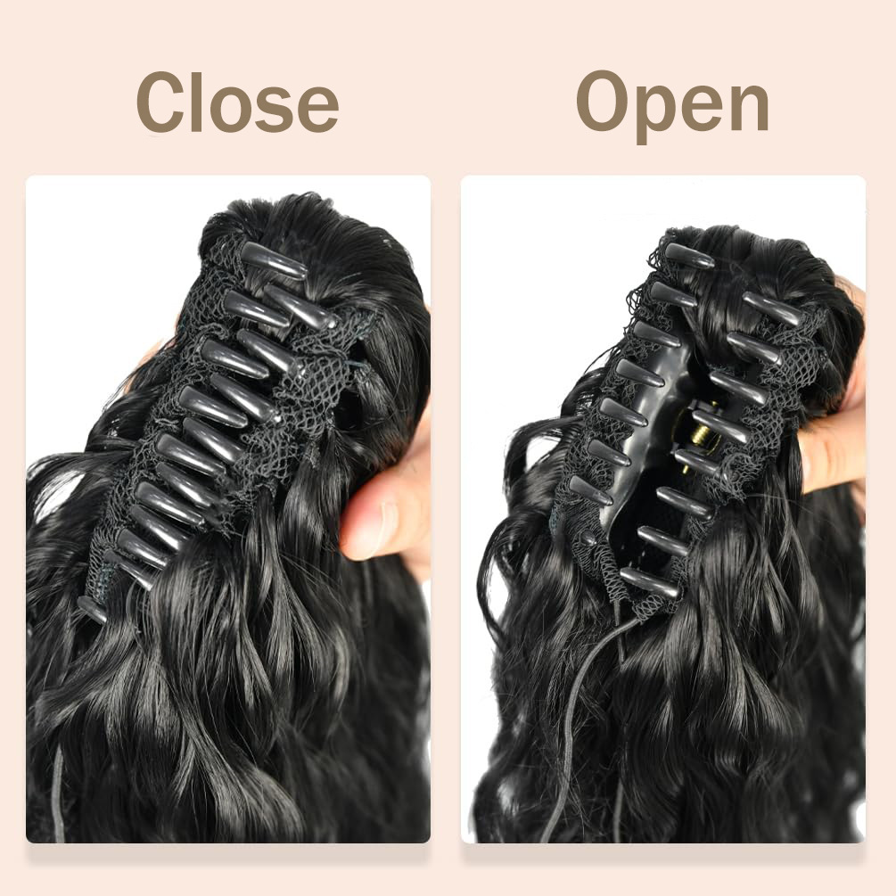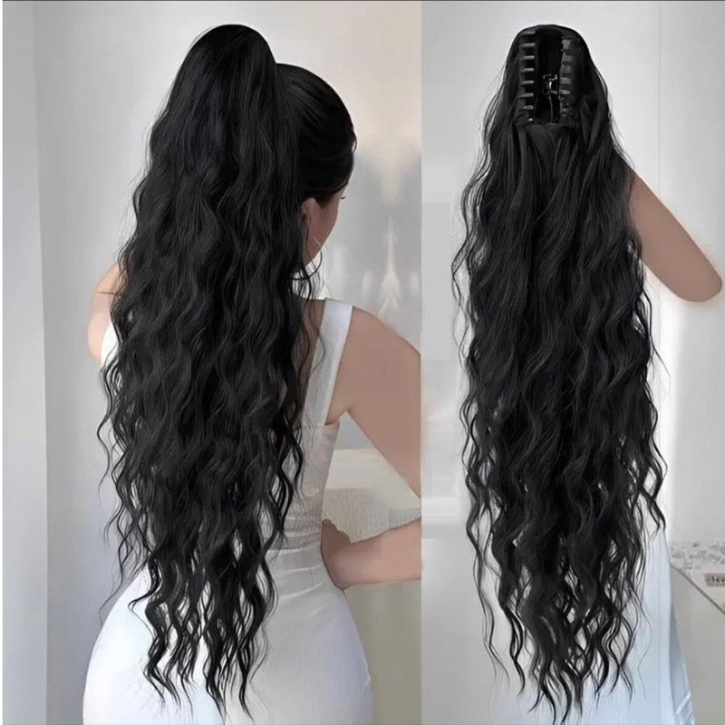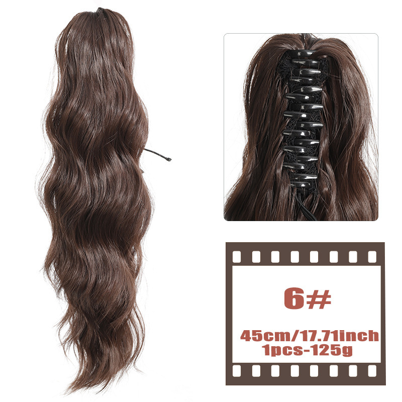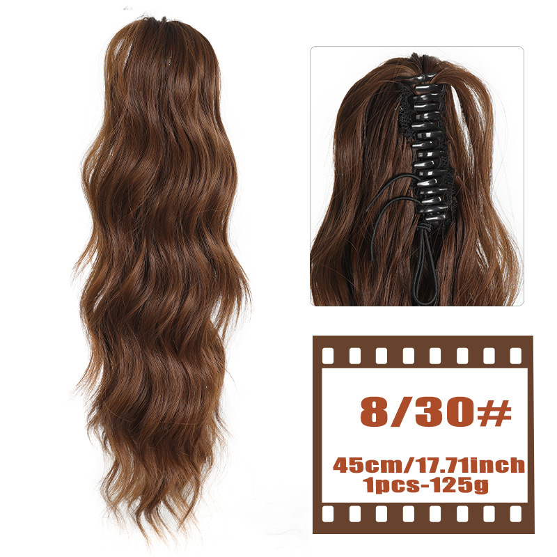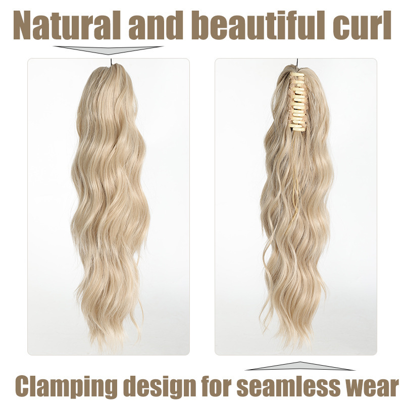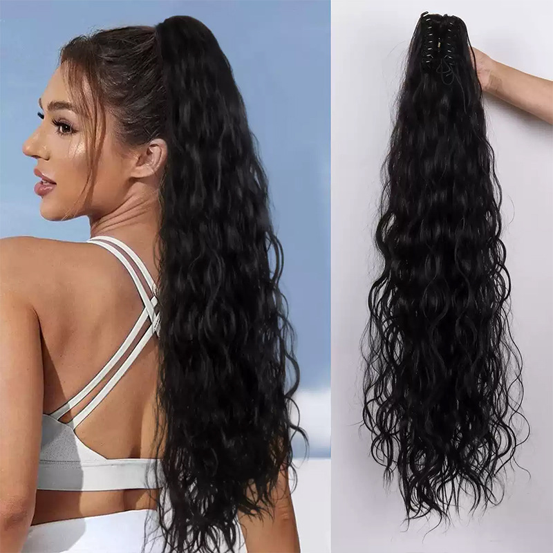 外国貿易のかつらの馬尾の女性の長髪の大きいつかみは水の波紋の長い巻き髪の偽の馬尾の化学繊維のかつらの高い馬尾のお下げを挟みます。