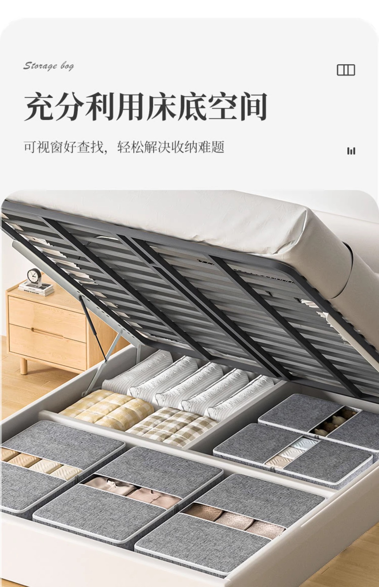 加厚无纺布床底收纳箱衣物整理扁平折叠被子收纳袋透明可储物袋子