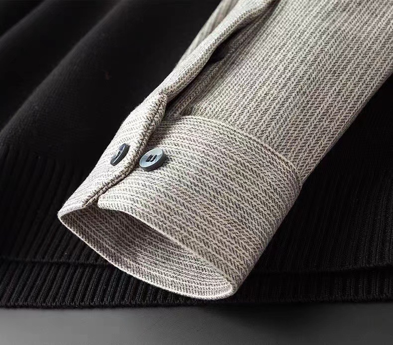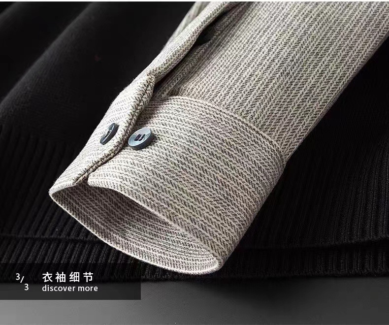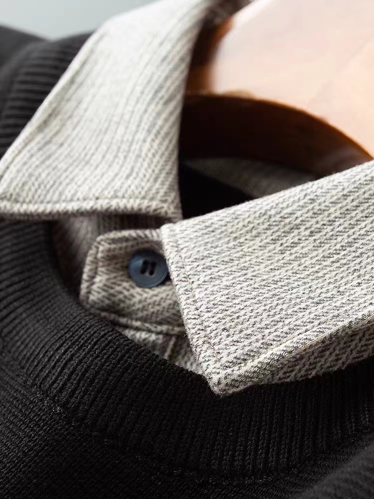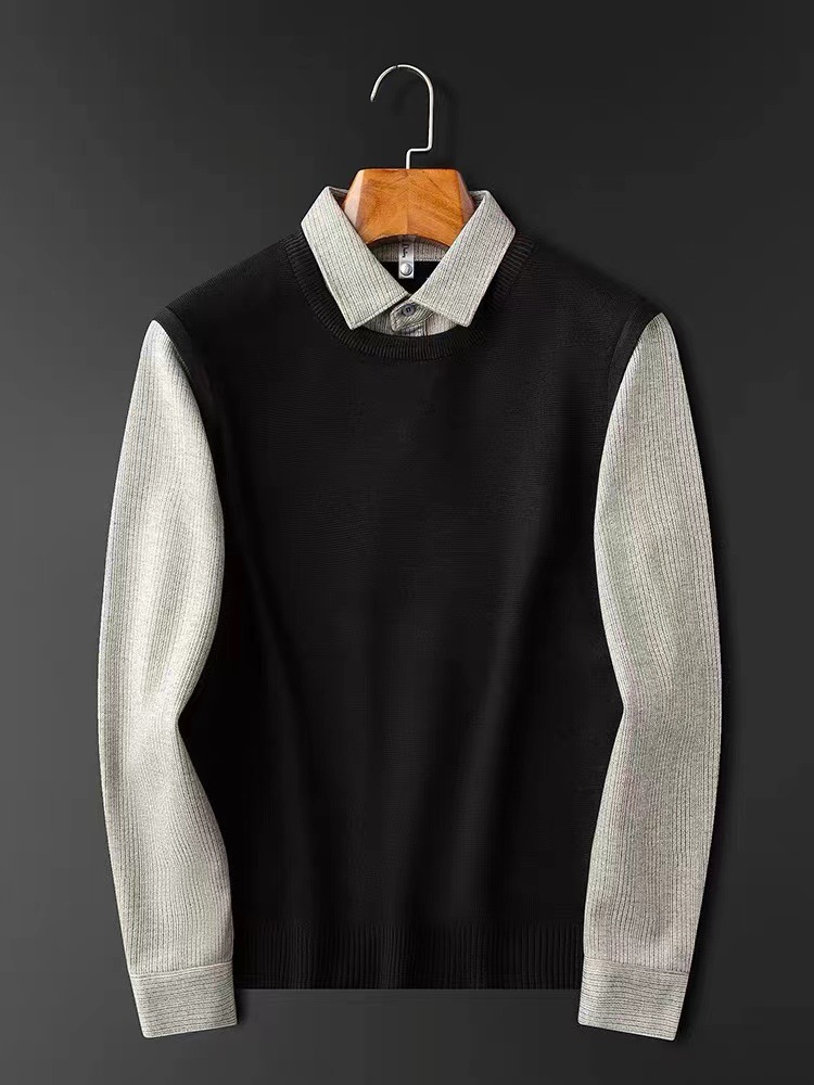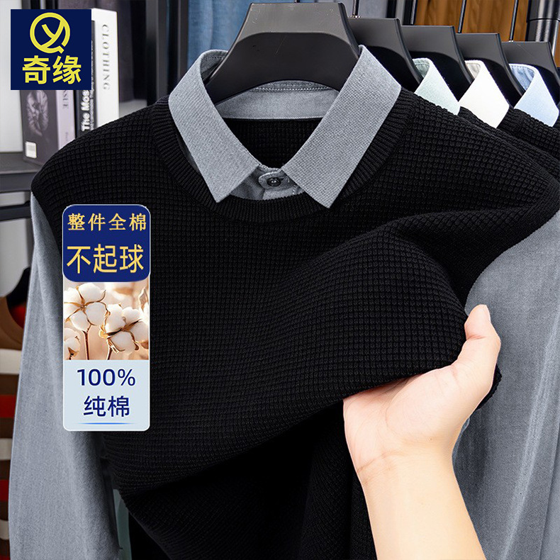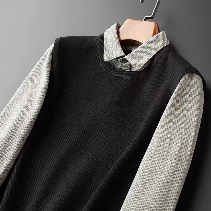 抗起球针织假两件2025秋季新款商务休闲拼接衬衫领长袖打底毛衣男