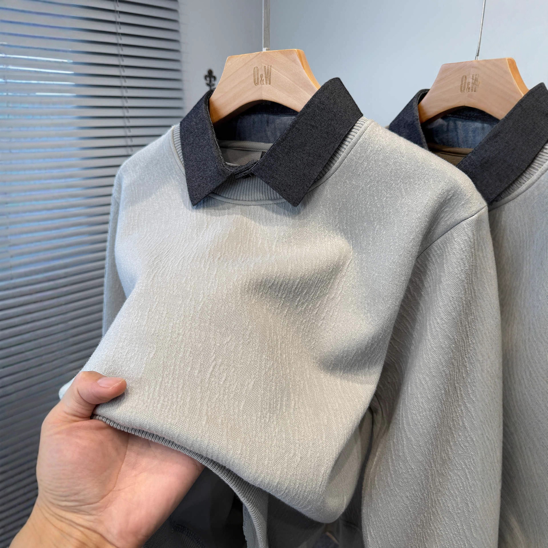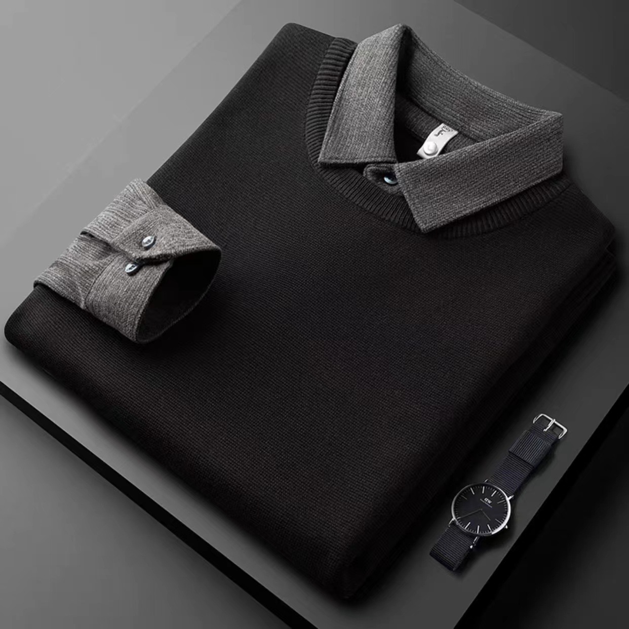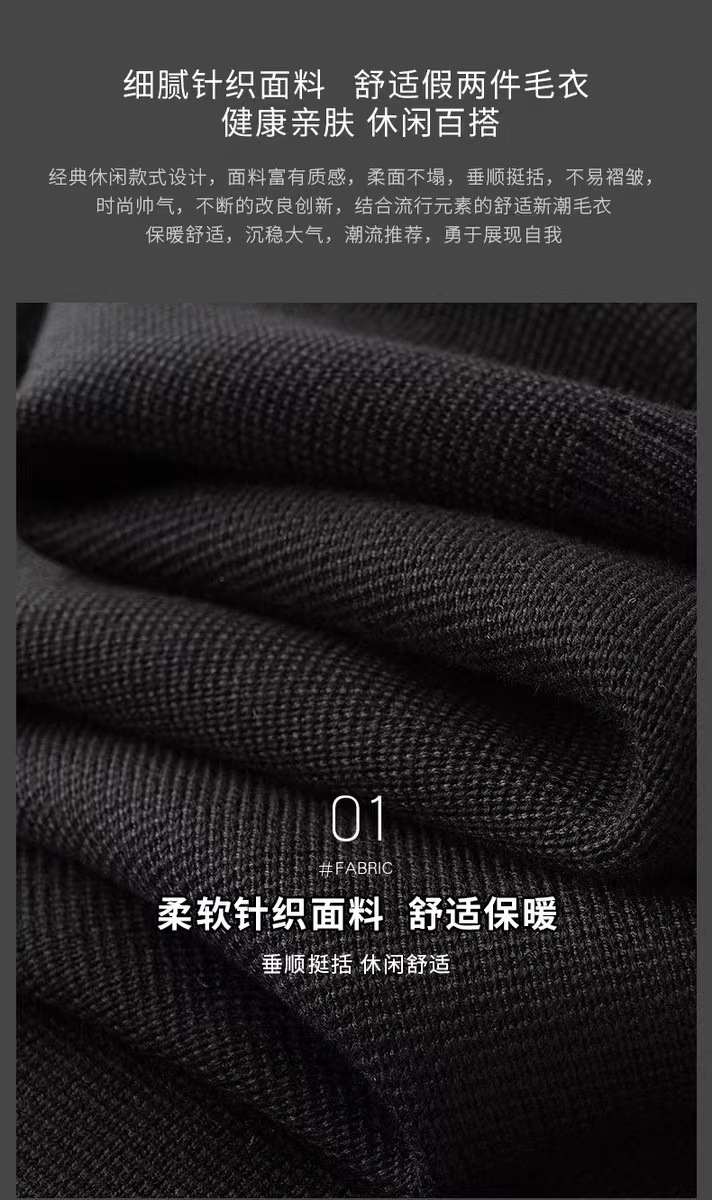 抗起球针织假两件2025秋季新款商务休闲拼接衬衫领长袖打底毛衣男