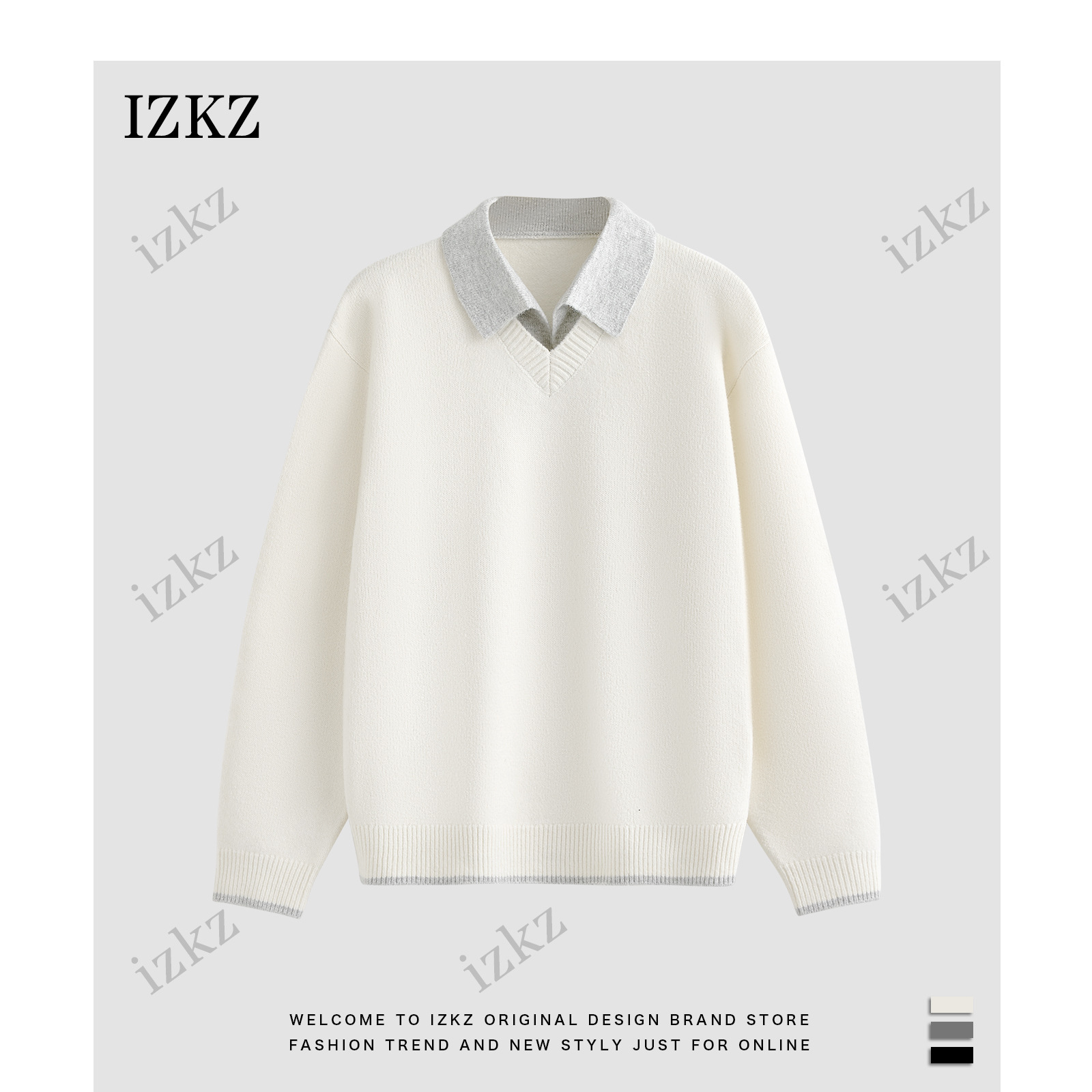 izkz シャツ襟付きフェイクツーピースセーター メンズ 冬 2025年新作 高級ウールニット ゆったりニットウェア