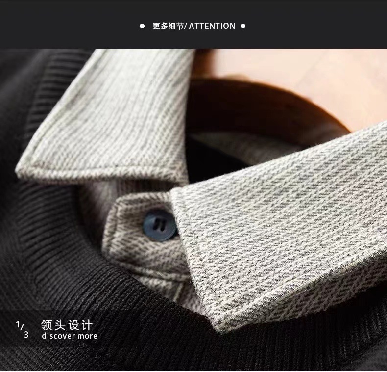 軽豪華級秋冬コーデュロイシャツ襟偽二枚セーター男性修身保温カジュアルビジネスニット男性