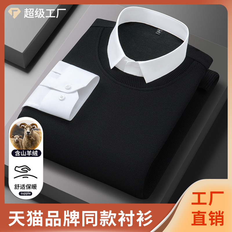 7A抗菌新款高端山羊绒针织衫衬衣男士商务免烫假两件打底衫内搭男