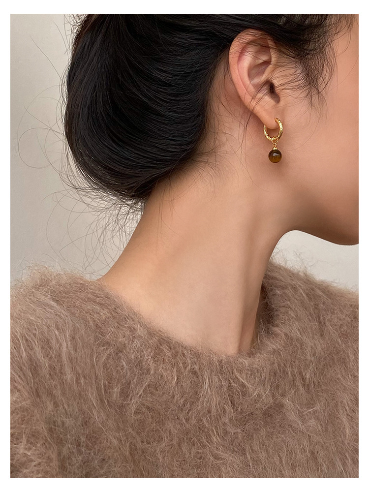 简约双面戴咖色耳扣珐琅滴油水滴耳圈耳环小巧百搭温柔气质耳饰品