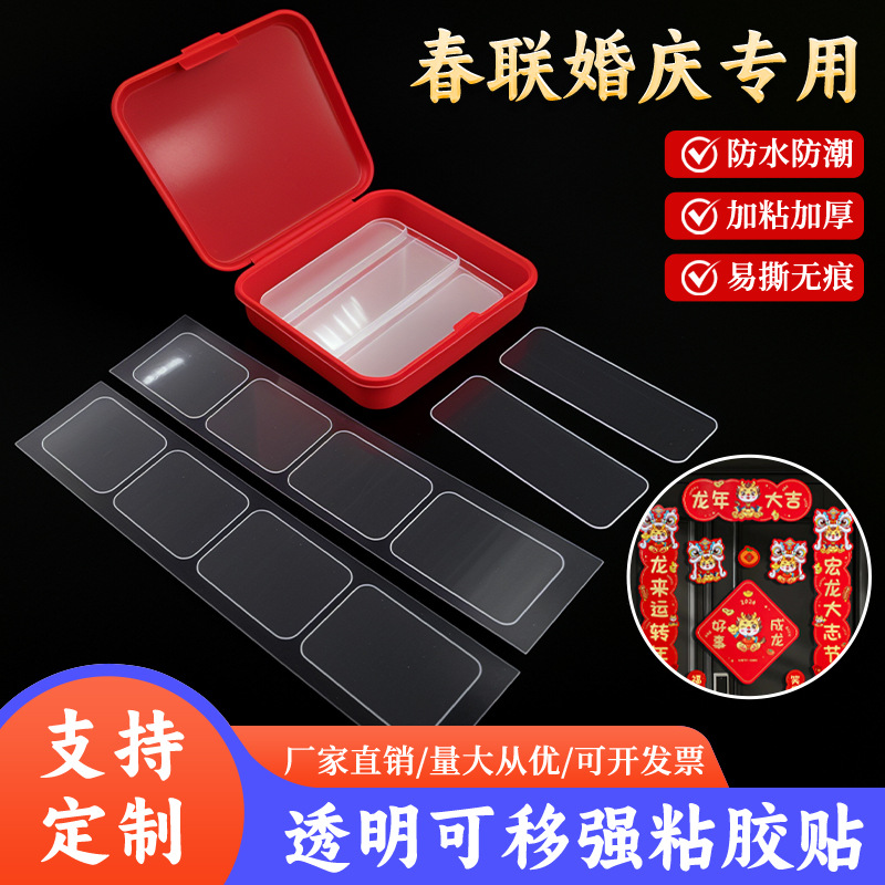 对联无痕双面胶春联贴透明胶贴婚车婚房装饰强力无痕纳米胶贴片
