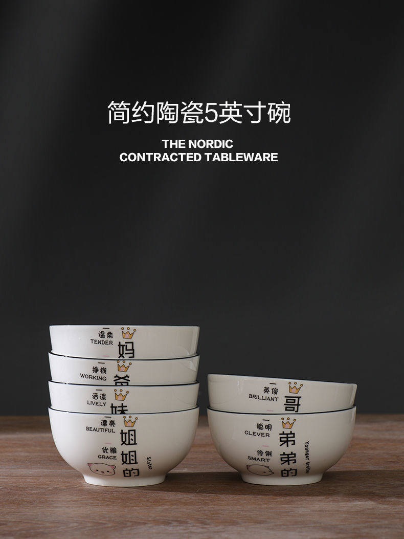 クラウンモデル5インチ親子ご飯碗単一陶磁器家庭用食器磁器碗朝食碗小碗セット