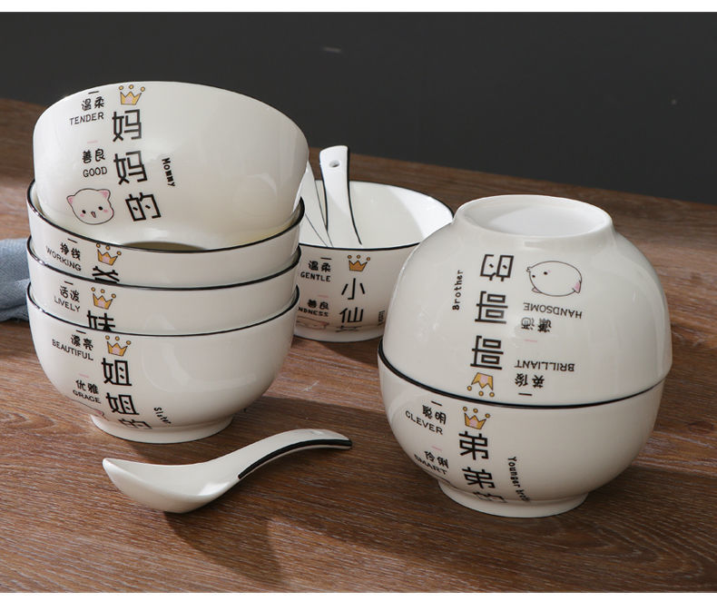 家庭用ご飯碗家族食事セット食器セット創意漫画陶磁器碗個性茶碗親子碗