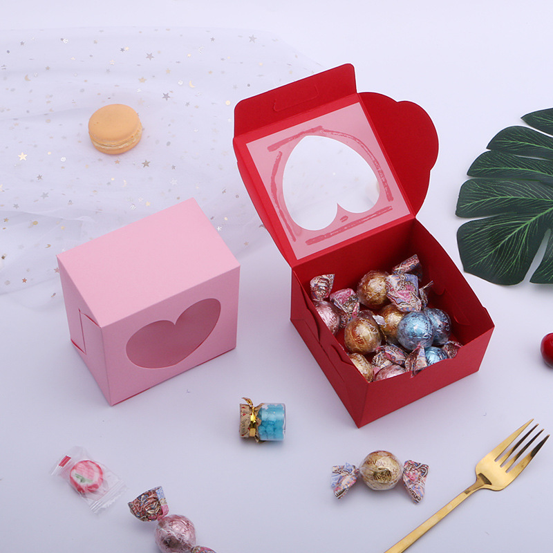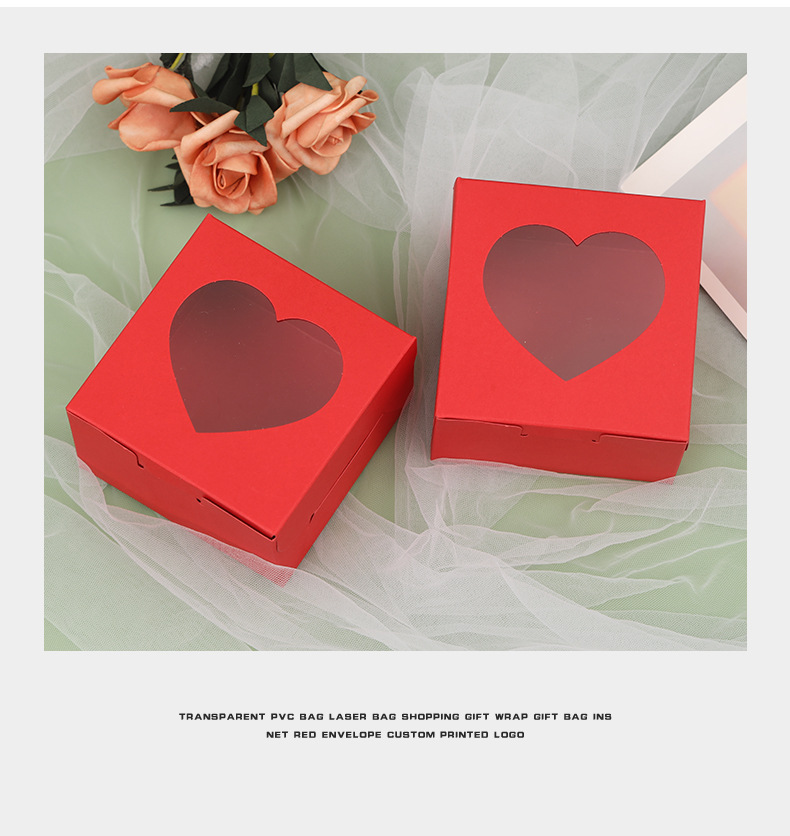 跨境热销爱心开窗纸盒可折叠喜糖盒情人节礼品包装盒方形包装纸盒