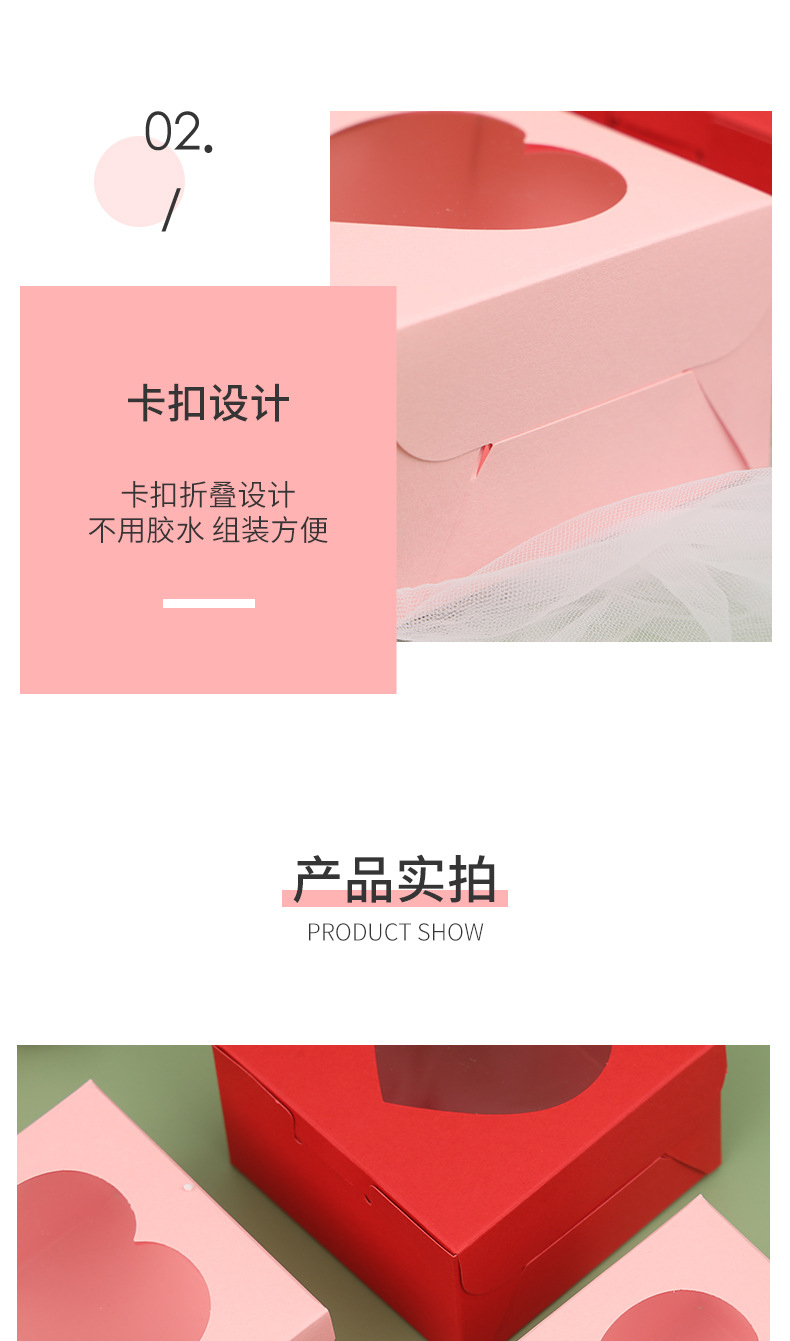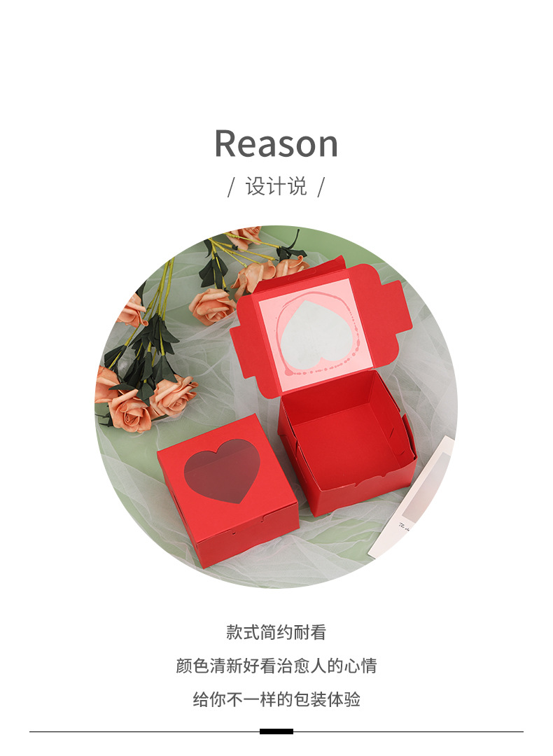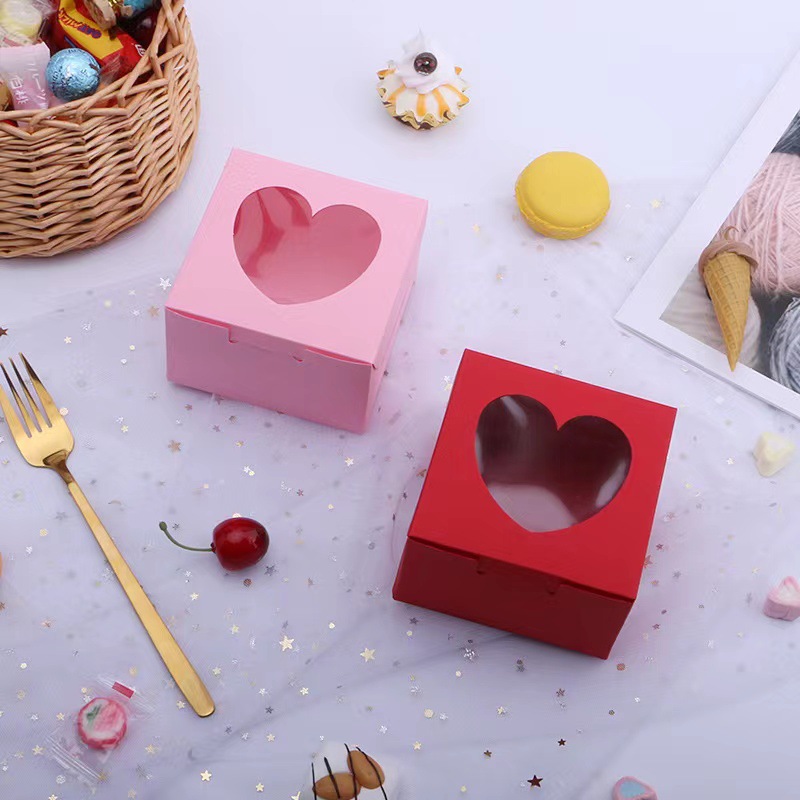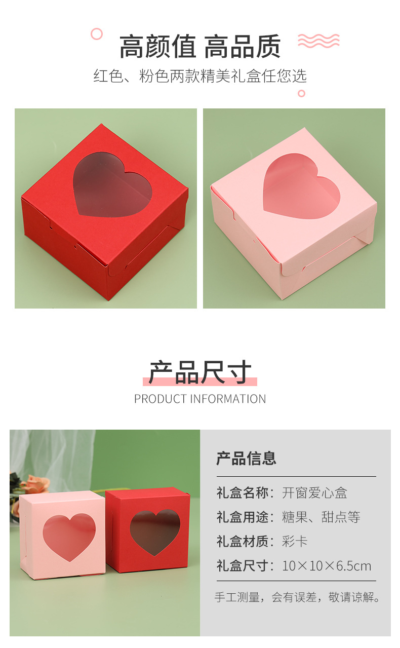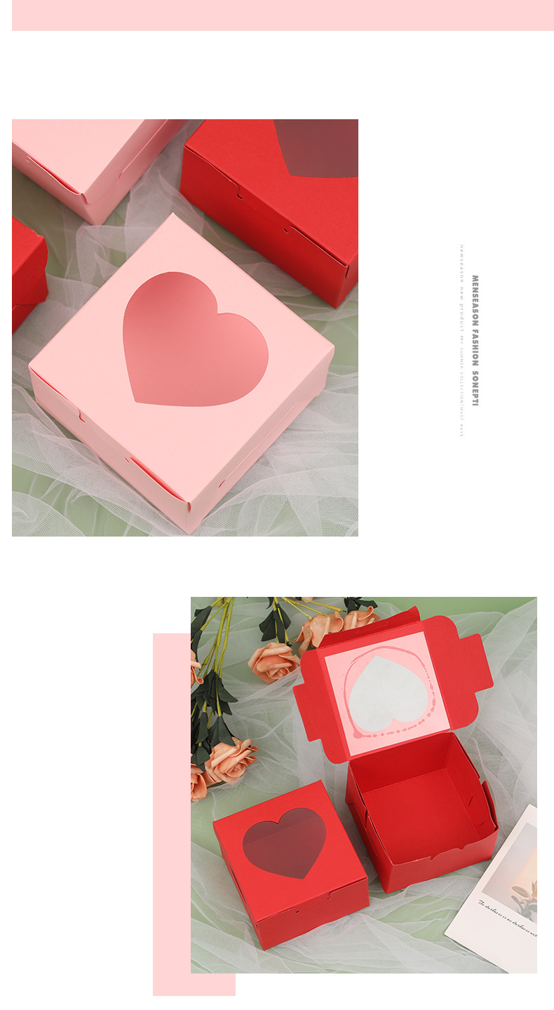 跨境彩卡开窗爱心纸盒高级感情人节甜品蛋糕耐高温烘培包装盒空盒