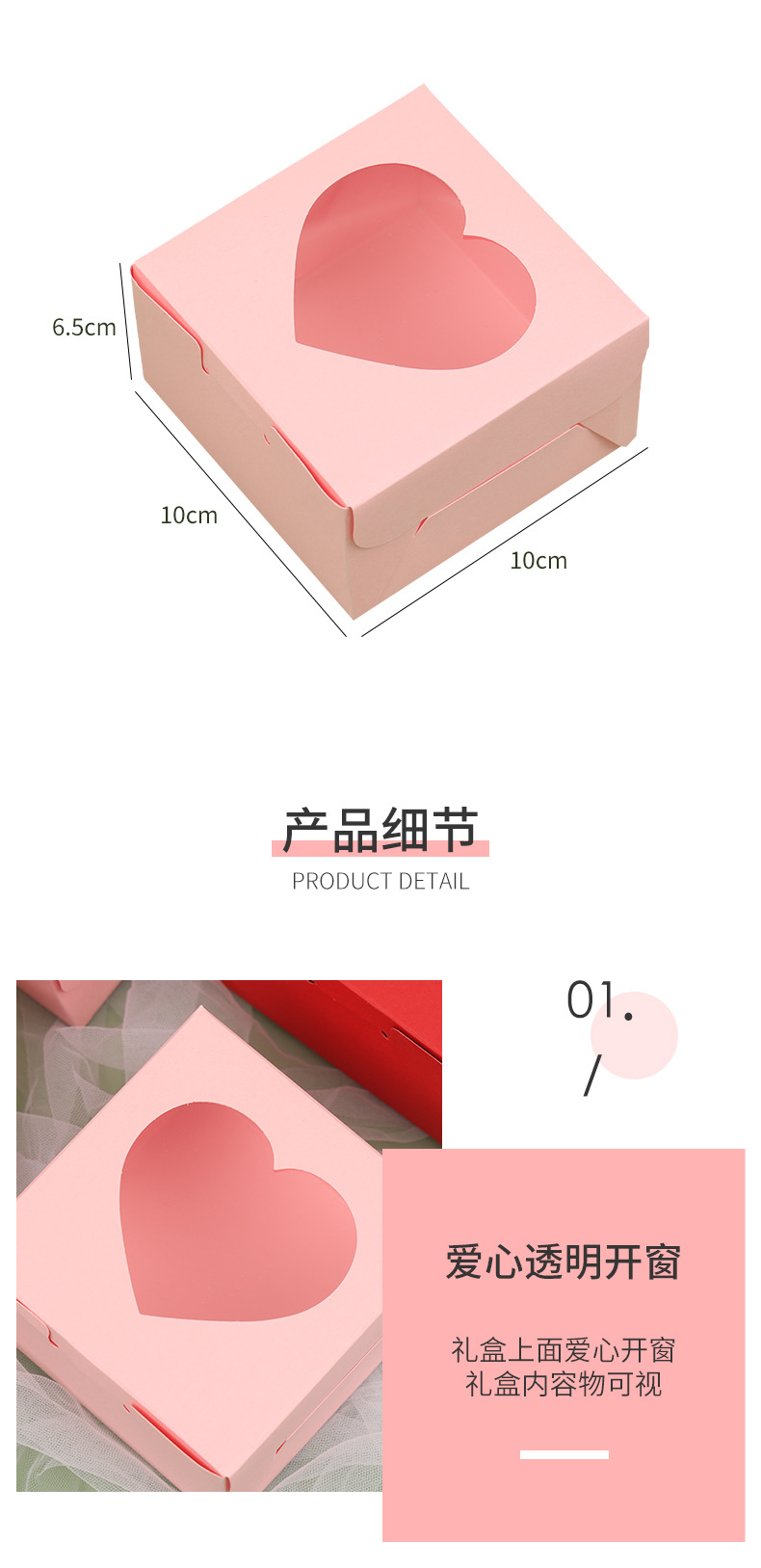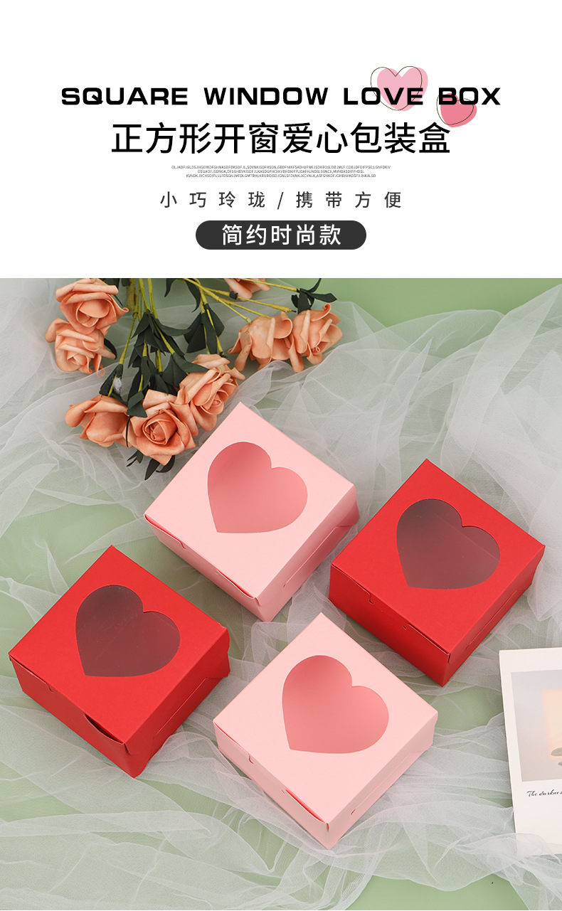 迷你小号方盒爱心开窗贴膜糖果盒跨境情人节礼物包装盒粉色心形盒