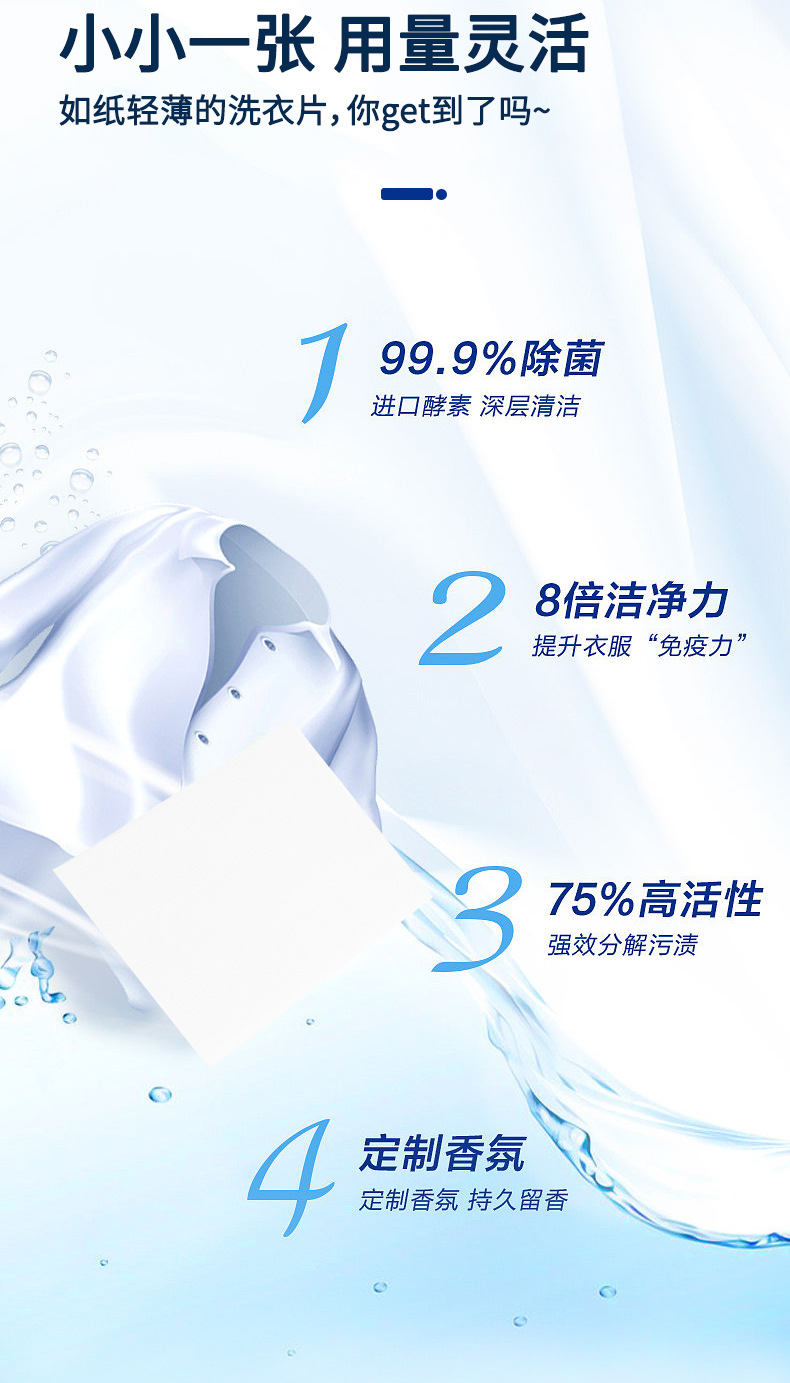 跨境浓缩香氛洗衣片源头工厂现货发虚线洗衣泡泡纸清水去污留香片