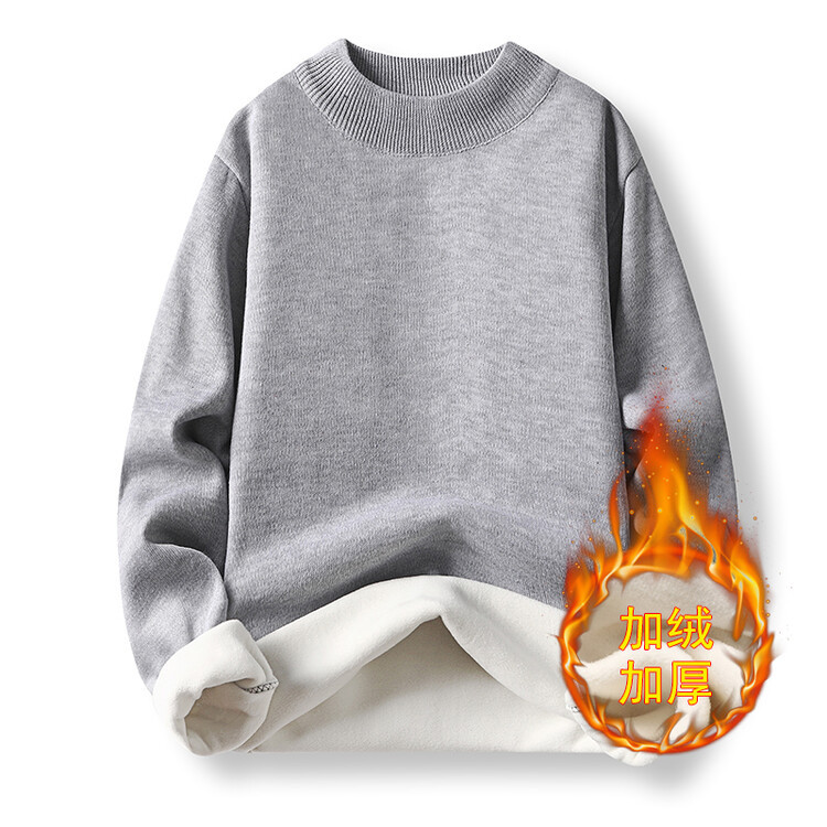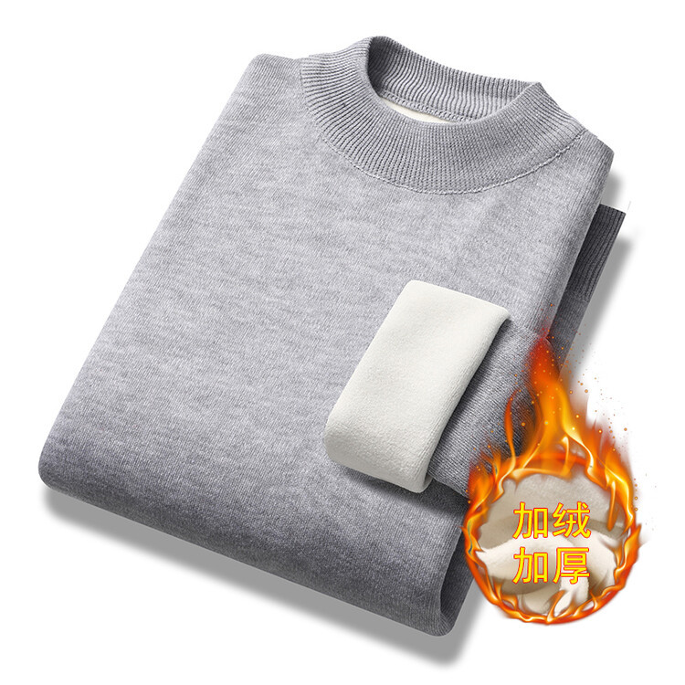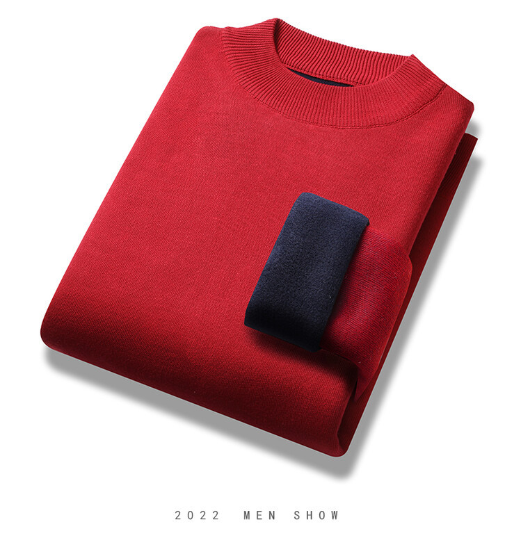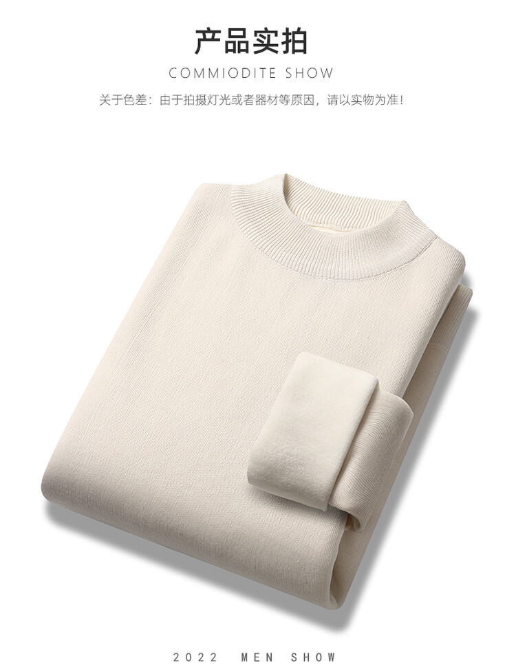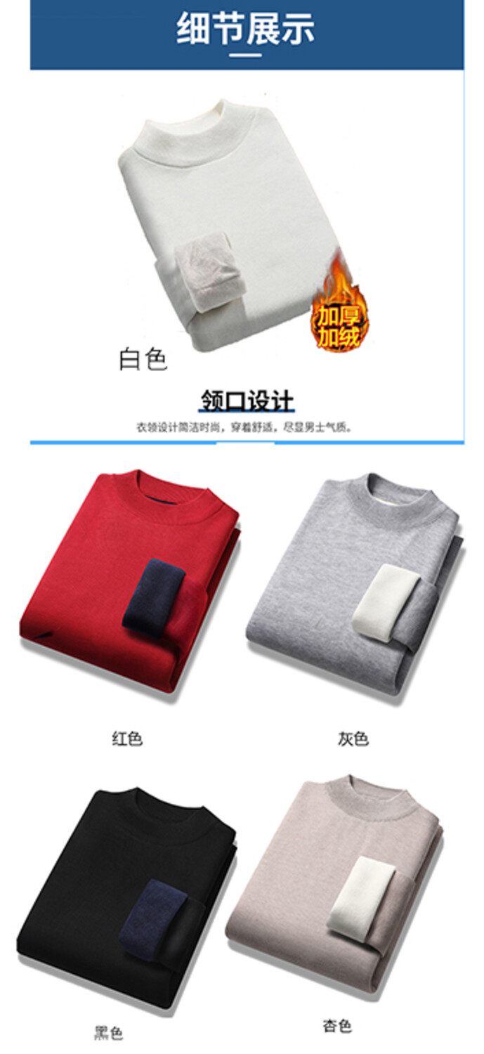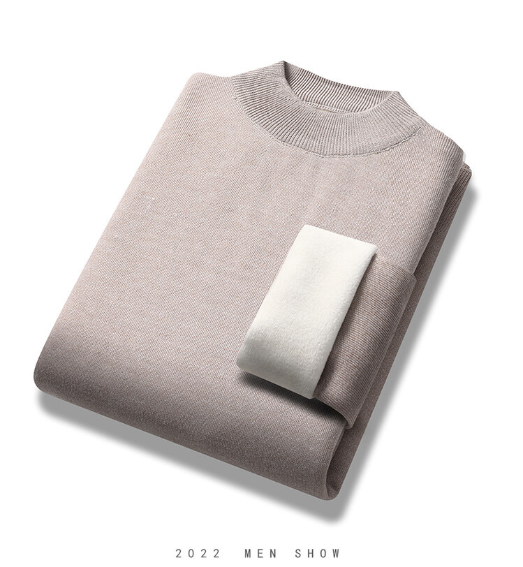 2023年新作 高級模造ウール メンズニット 裏起毛 厚手 ハーフタートルネック 保温 無地セーター メンズインナー 長袖
