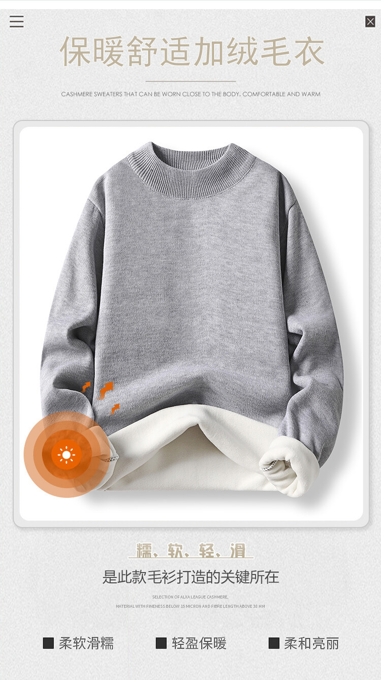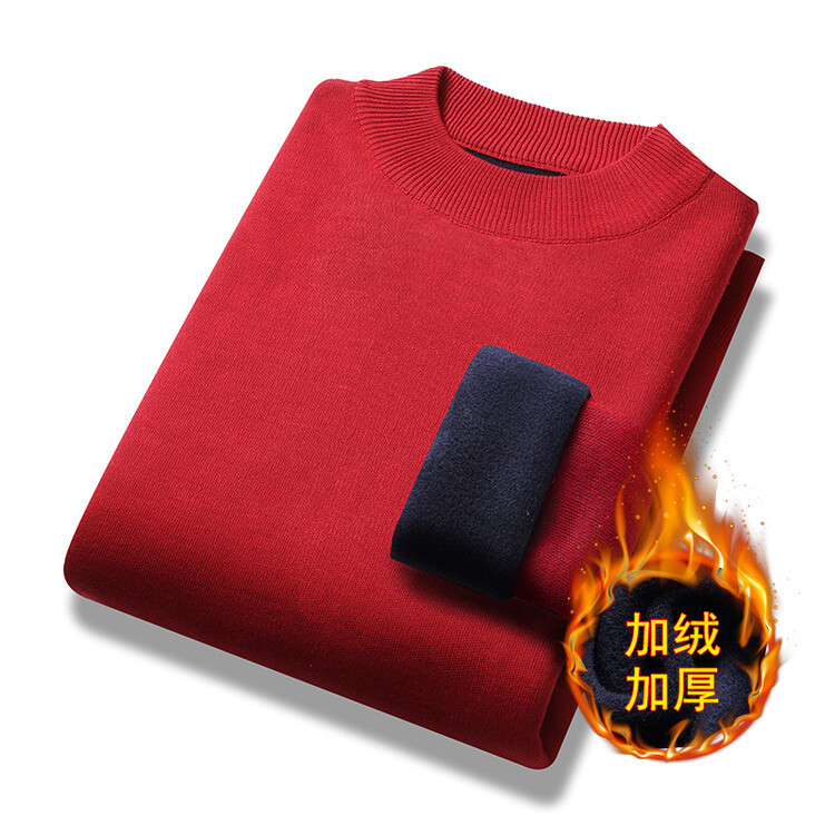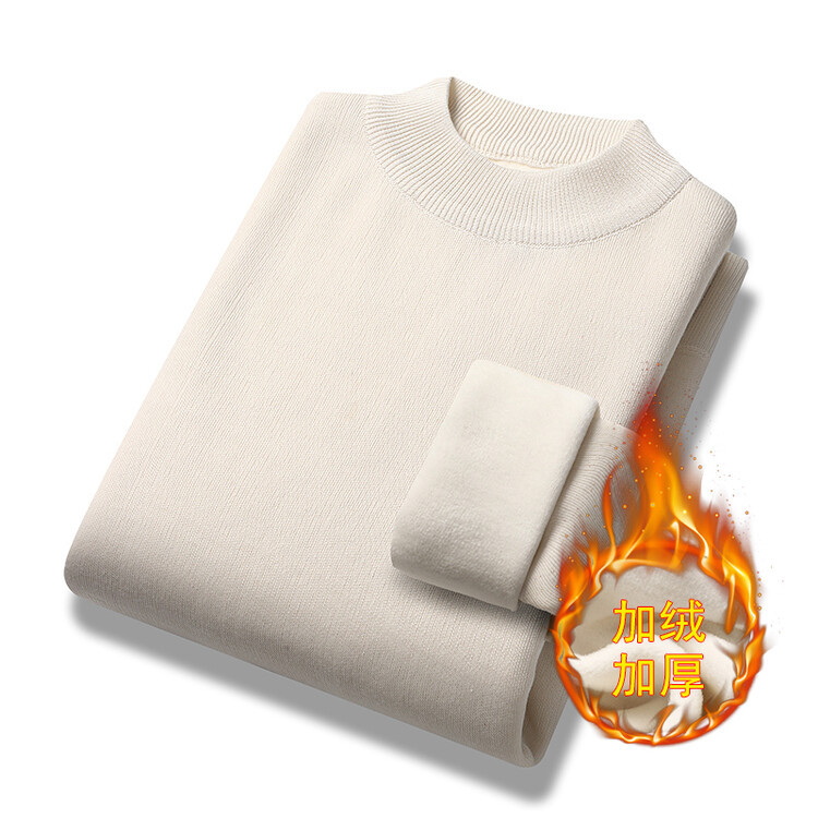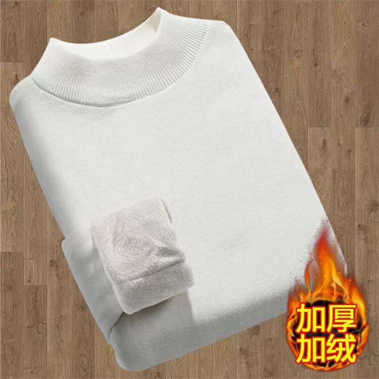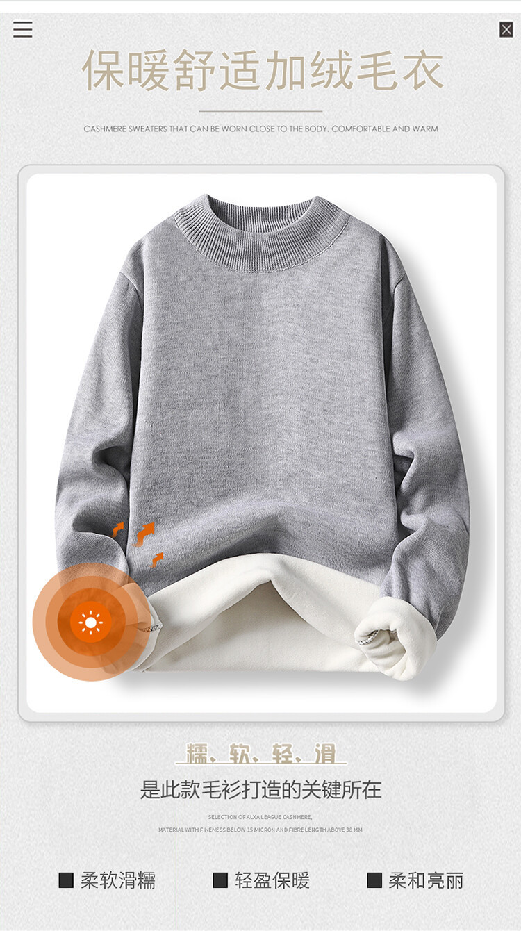 2023年新作 高級模造ウール メンズニット 裏起毛 厚手 ハーフタートルネック 保温 無地セーター メンズインナー 長袖