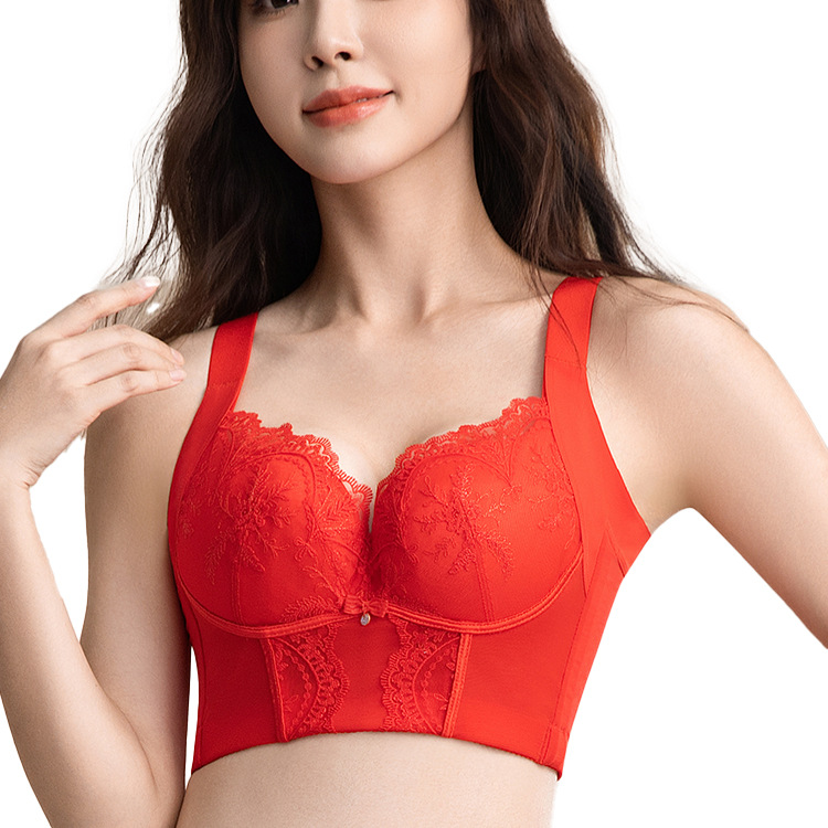 新品セクシーレースバックスチールリング無しランジェリーbcカップ集約調整型ブラジャー上トートハイサイド比収副乳カバー