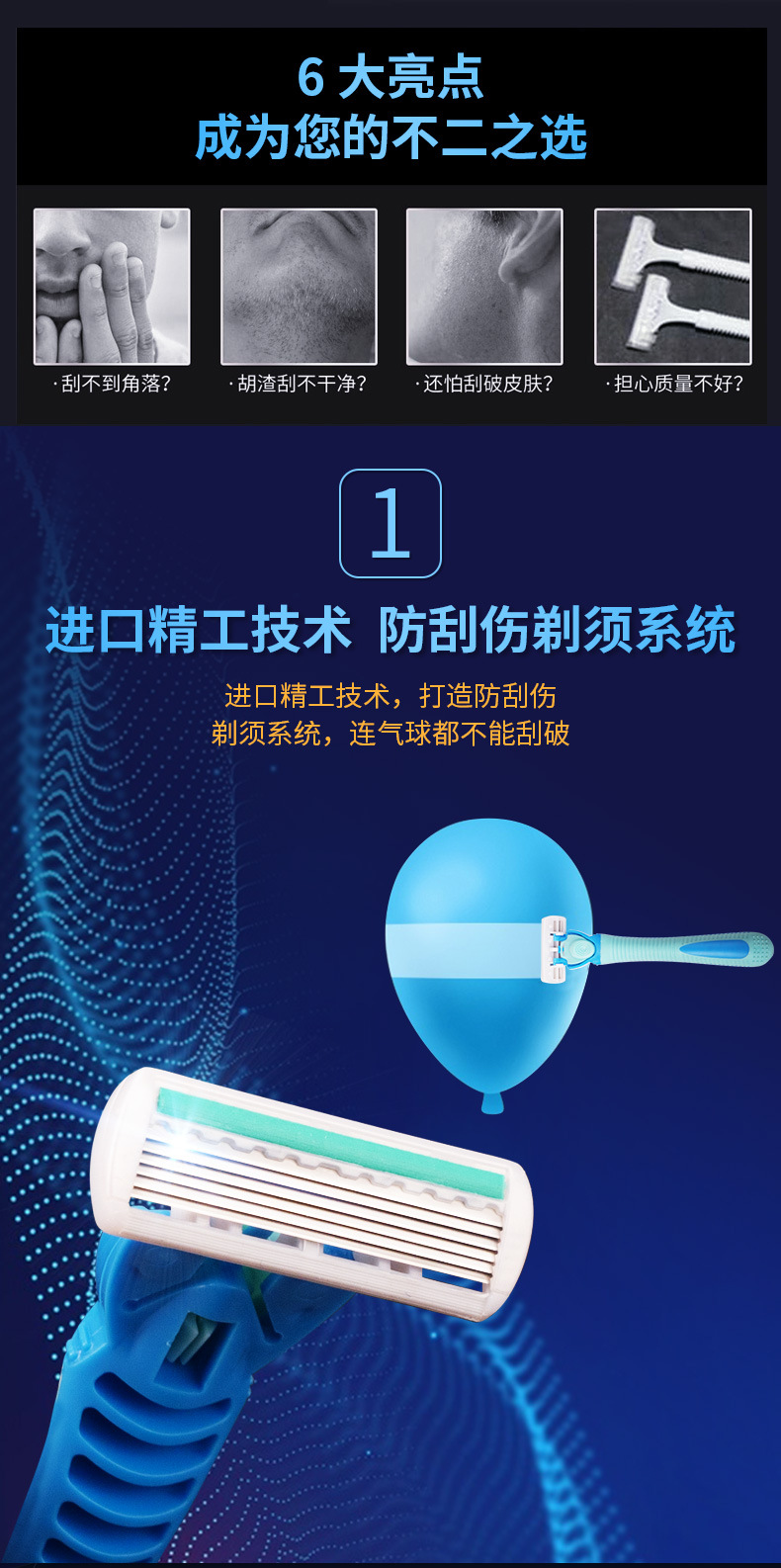 男士通用手动剃须刀八层不锈钢刀头防滑设计全身可用刮毛刀批发