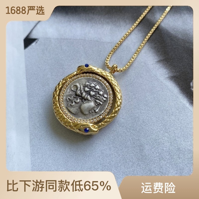 「世紀のヘビの神殿」マザーオブパール彫刻立体古代コインネックレスレトロデザイン回転ジュエリーペンダント卸売ドロップシッピング