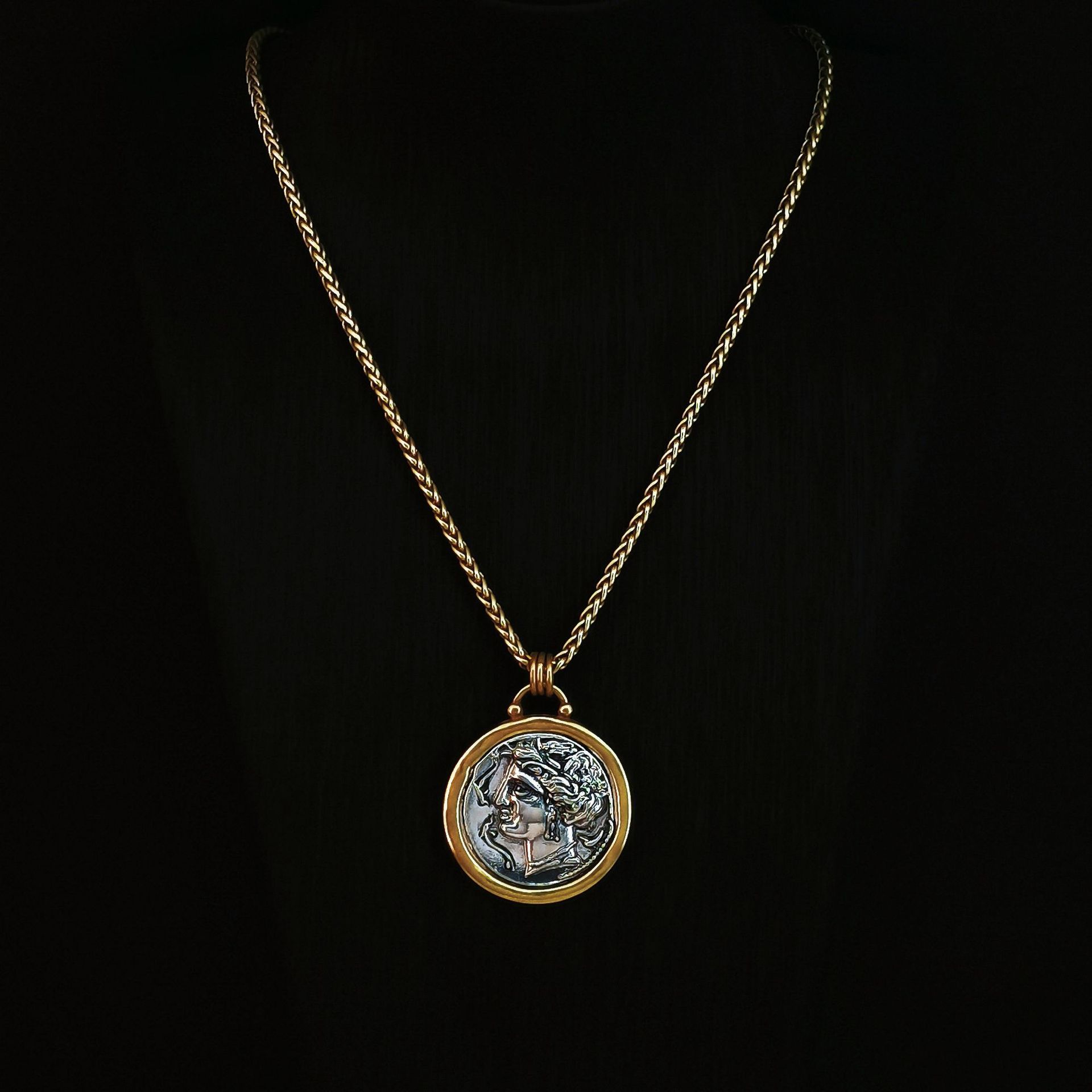 ヴィンテージ風古銭 ローマのゼウス神の古銭 運命の神 両面回転可能 S925シルバーネックレス