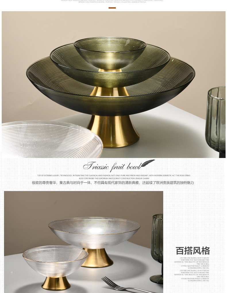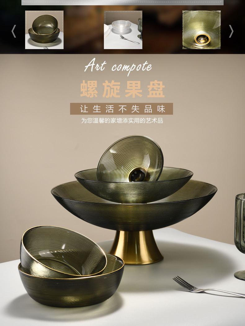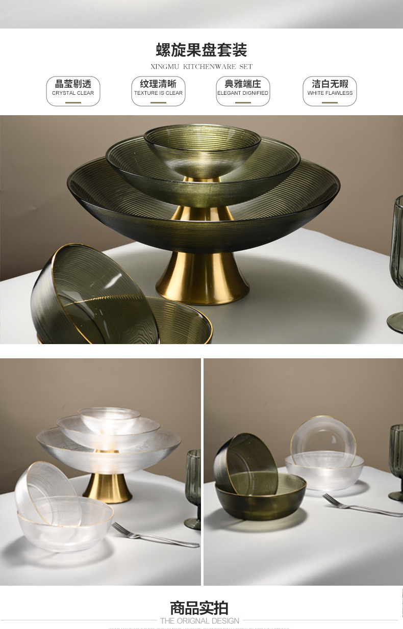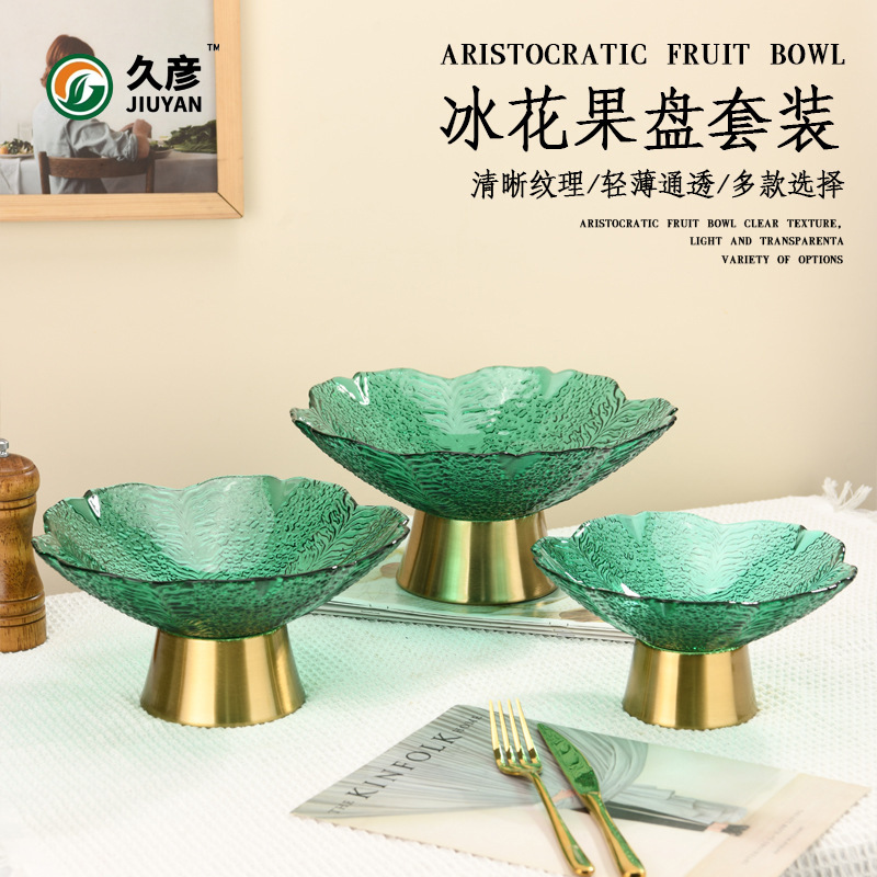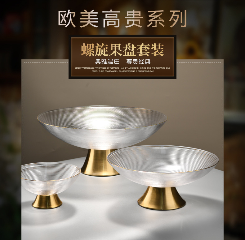 ヨーロピアンスタイルのライトラグジュアリー花火ゴールド塗装ガラスフルーツプレート家庭用高級フルーツプレートドライフルーツプレート高級セットプレート