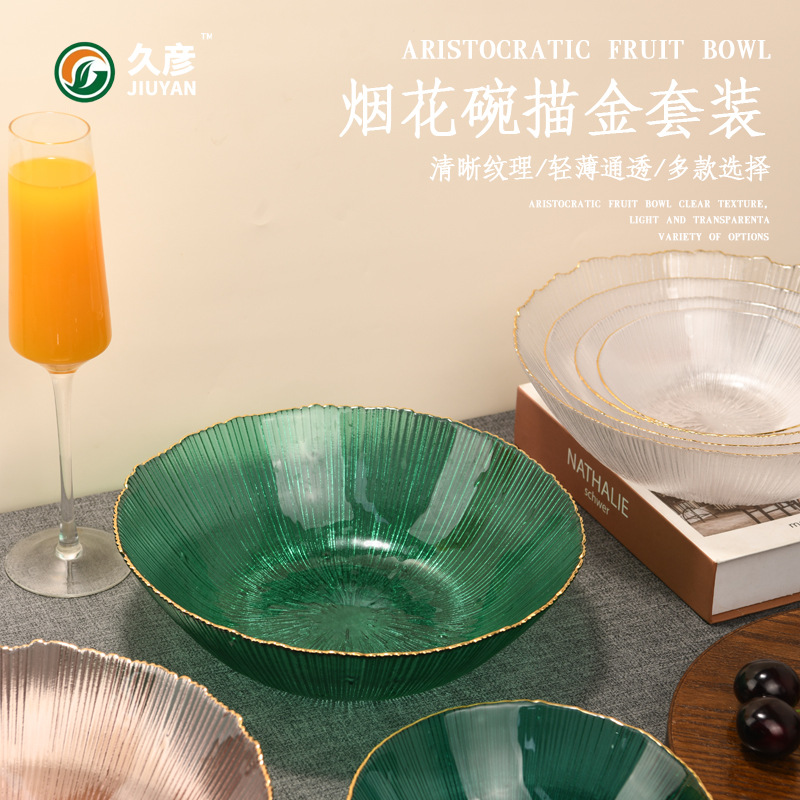 モダンでシンプルなカラフルな花火ゴールド塗装ガラスボウルセット家庭用高価値クリエイティブサラダボウルデザートボウル