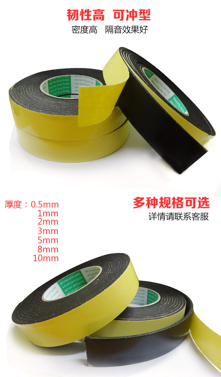EVA黒色フォームテープは、片面スポンジに発泡スポンジテープの防振衝突防止シールを厚く粘着している