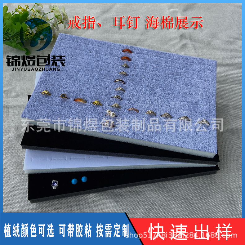 厂家供应戒指植绒海绵内托 耳钉项链珠宝首饰盒托盘海绵垫收纳垫