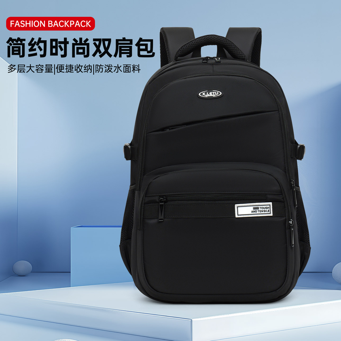 跨境双肩包男士商务休闲高级感背包户外防水扩容大容量通勤商务包